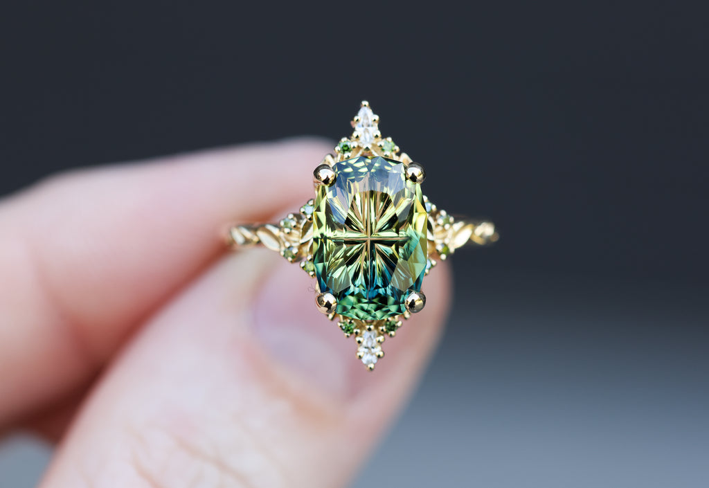 Uma sources and works with a large variety of natural and lab created stones. She loves finding and working with stones that are unique in color and cut. We try are absolute best to be mindful and careful about where our stones are sourced from.