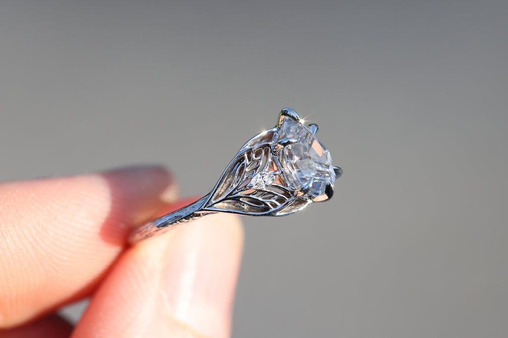 First, you’ll select your setting from my Bespoke Settings page. Next, choose your dream center stone from my Loose Gemstones page. Lastly, select side stones when applicable and choose your desired metal. I am happy to work with you to further customize a one-of-a-kind ring, all customization just needs to be based on current designs I offer.