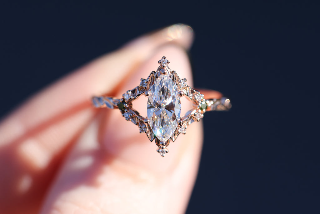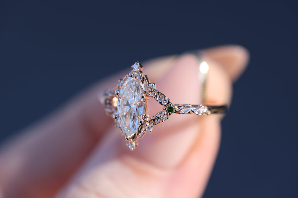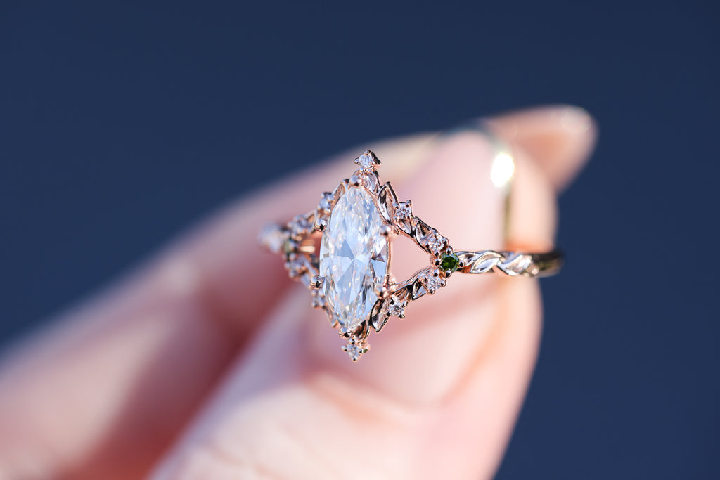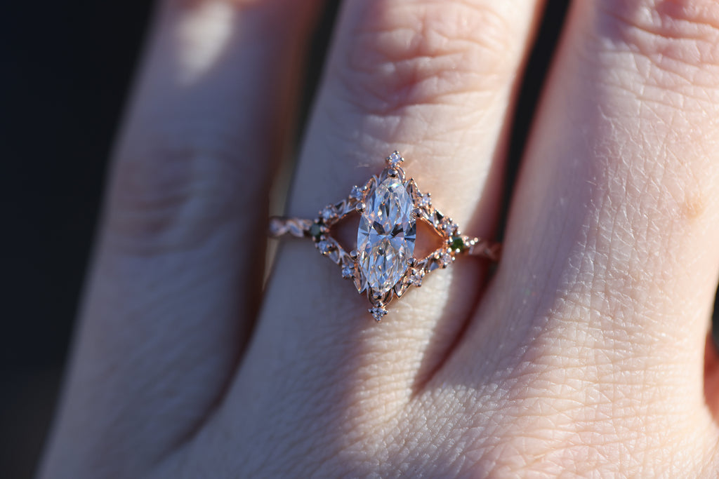 Briar rose solitaire with 10x5mm marquise lab diamond center
