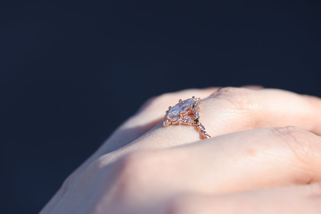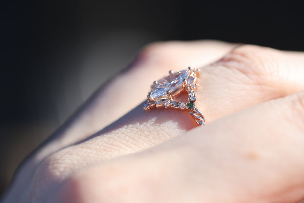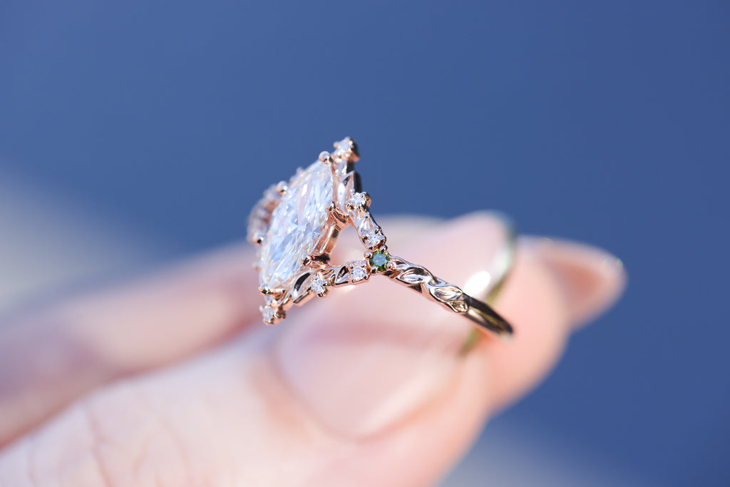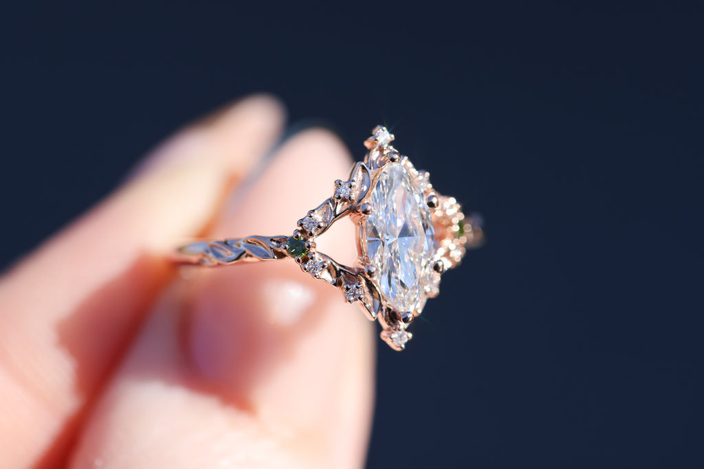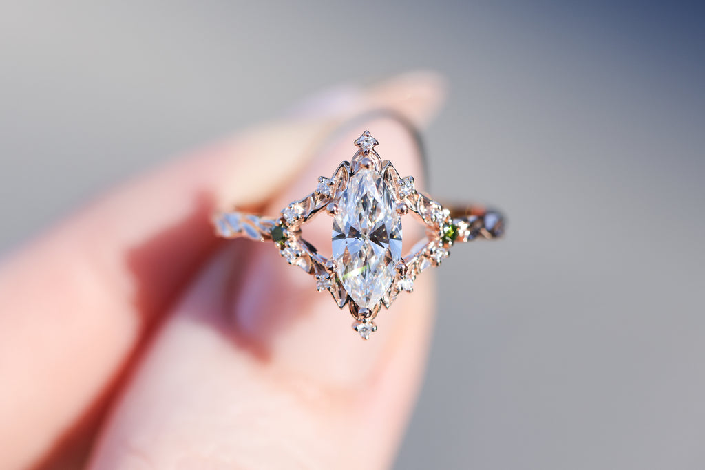 Briar rose solitaire with 10x5mm marquise lab diamond center