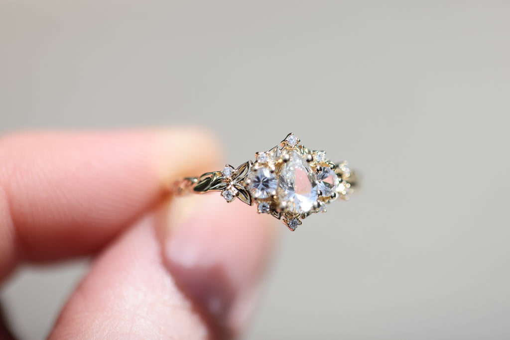 Briar Rose Three Stone with 6x4mm pear sapphire