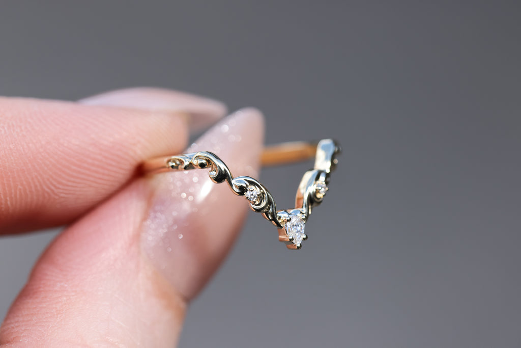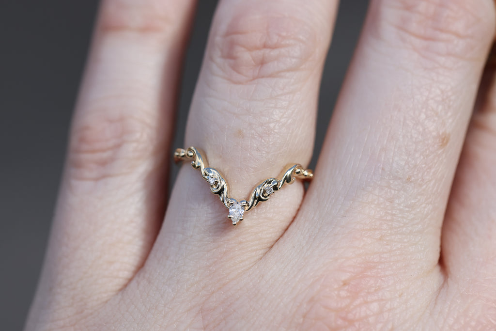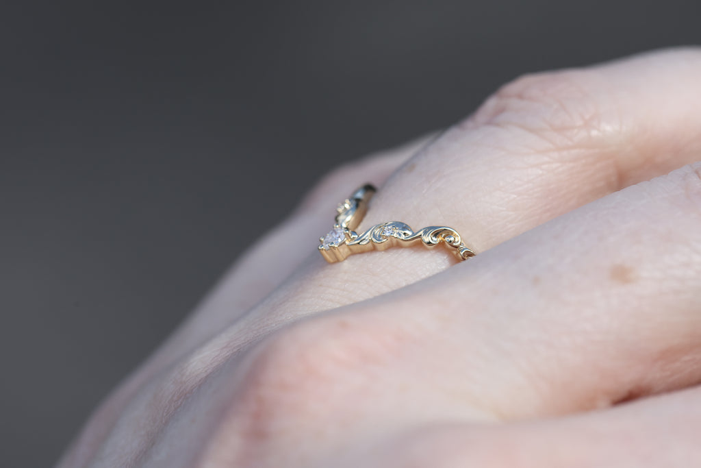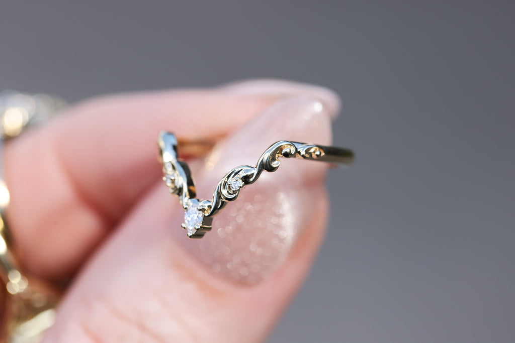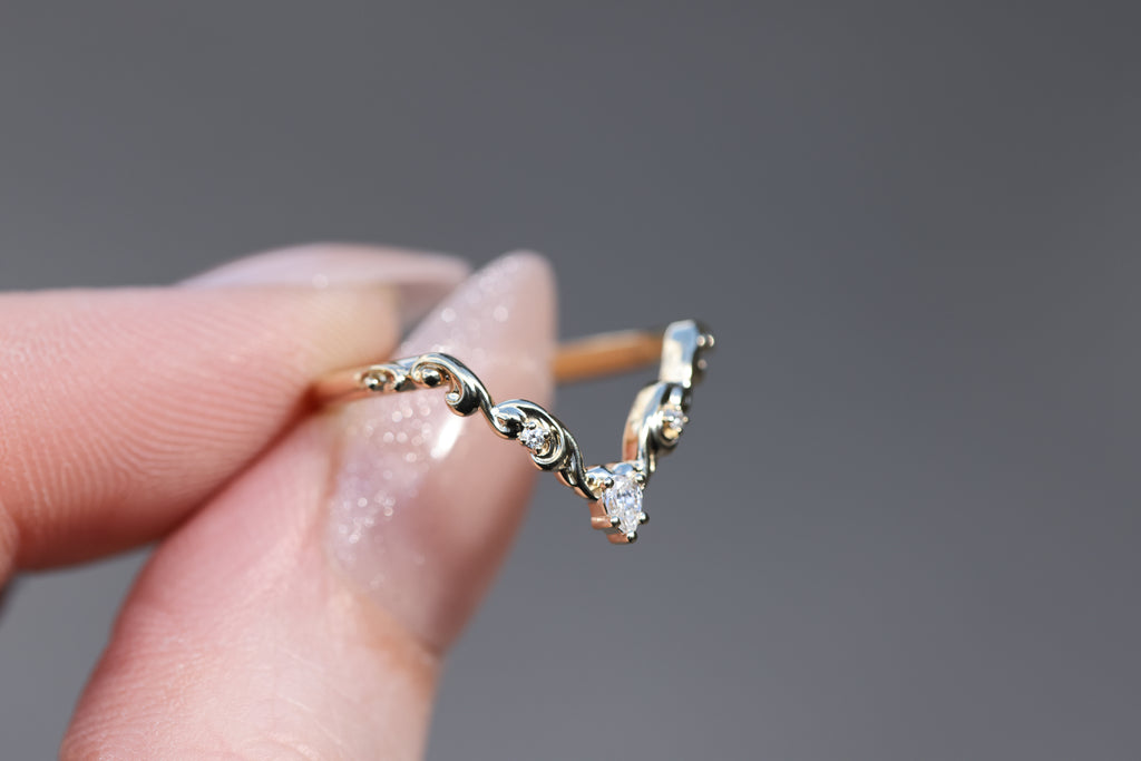 - This is a deeper curve than my other curved filigree bands, matching well with larger center stones or longer center stones