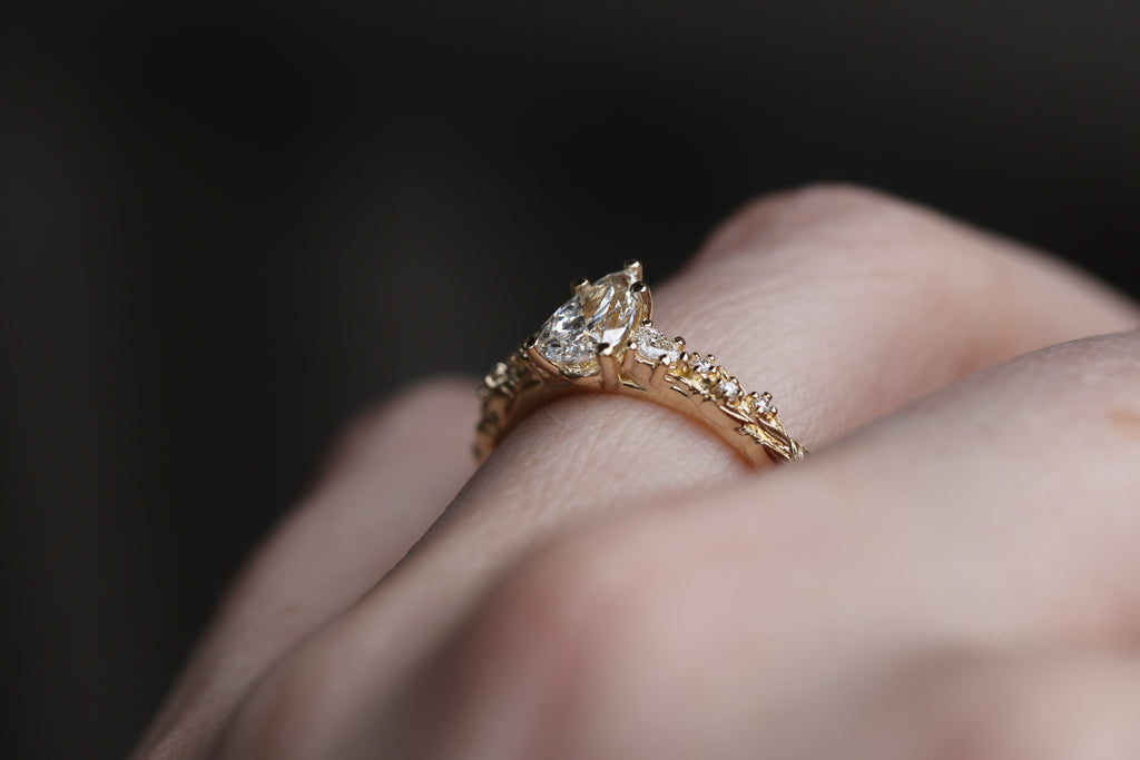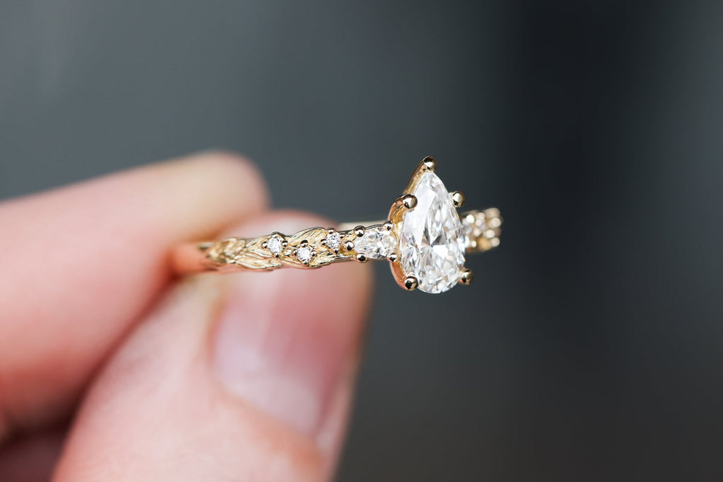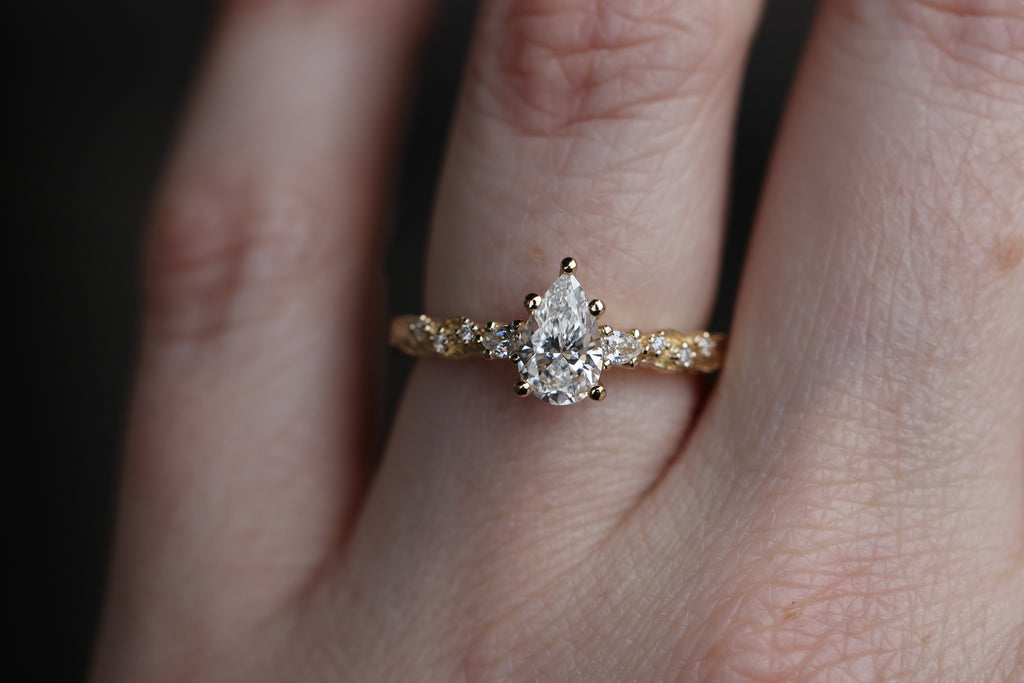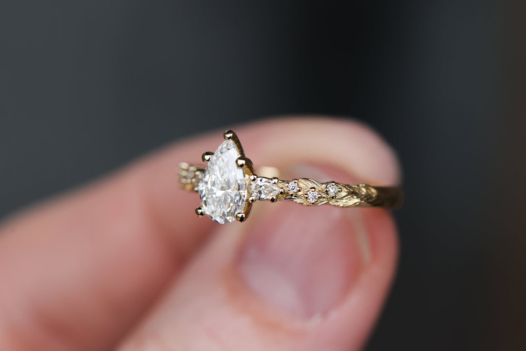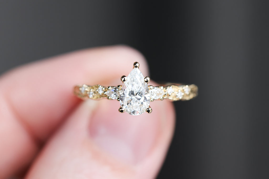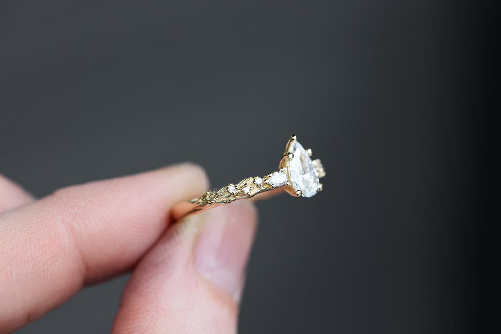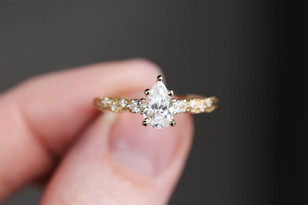 Rowan three stone with 8x5mm pear lab diamond
