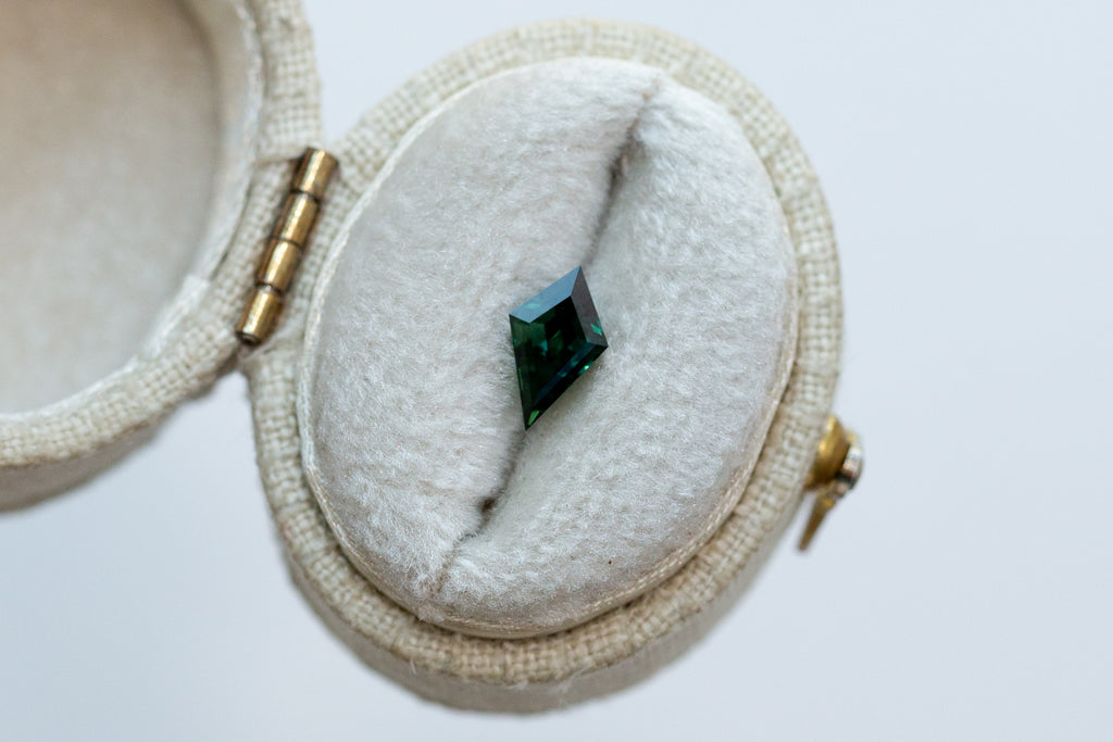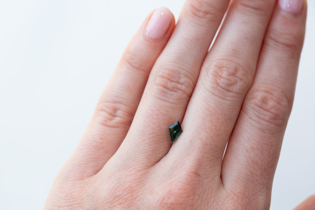 0.85ct Kite Cut Deep Teal Green Sapphire