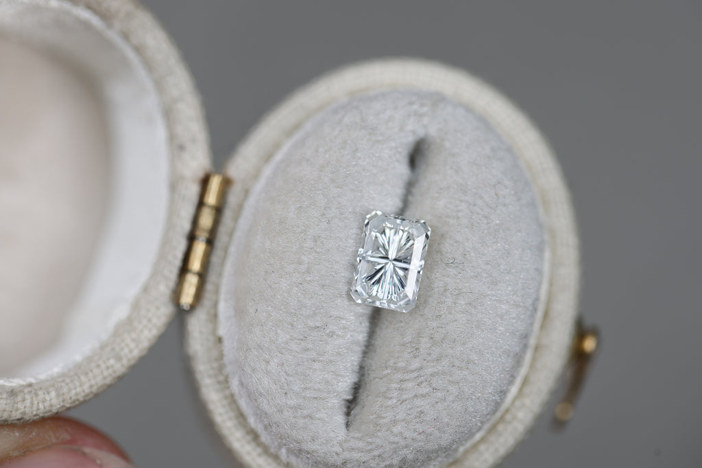This stunning rectangle white sapphire is so gorgeous with its custom Starbrite faceting from award winning gem cutter John Dyer!