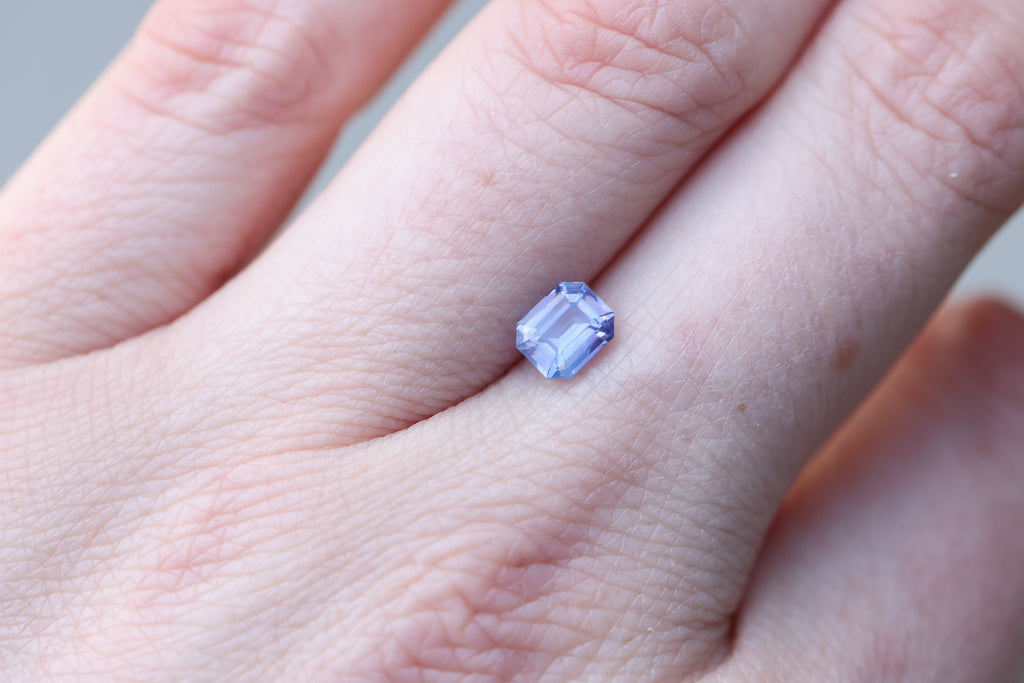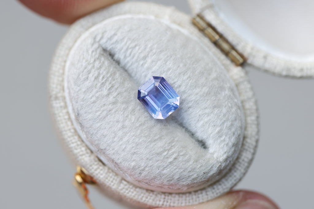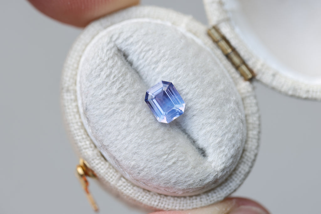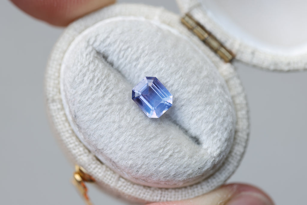 This stunning emerald cut sapphire has such a beautiful blue color that just cascades off its facets!