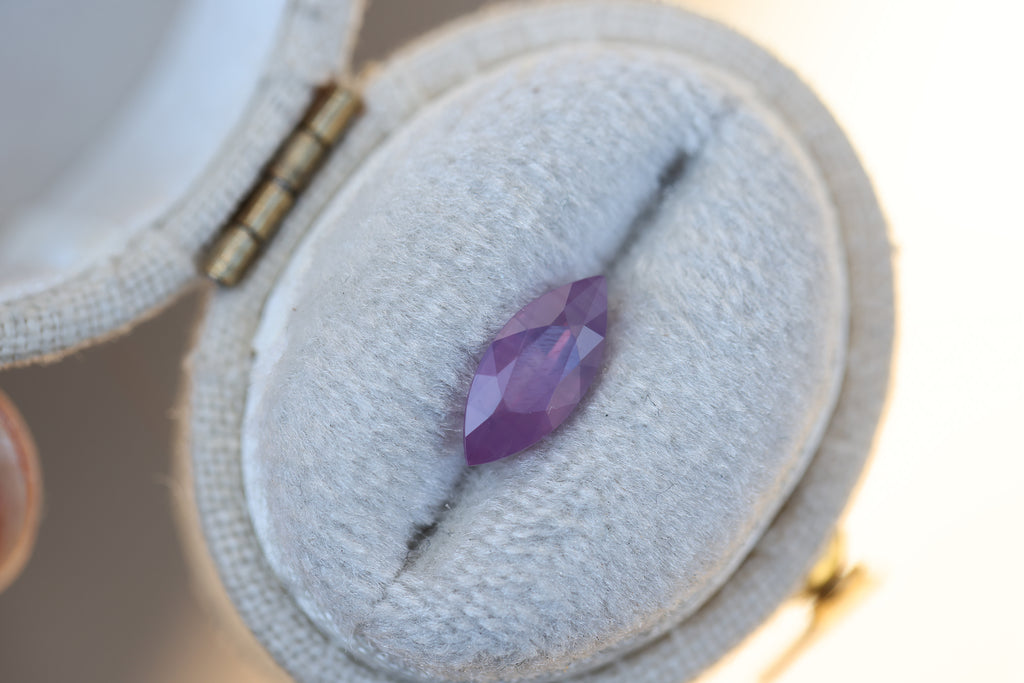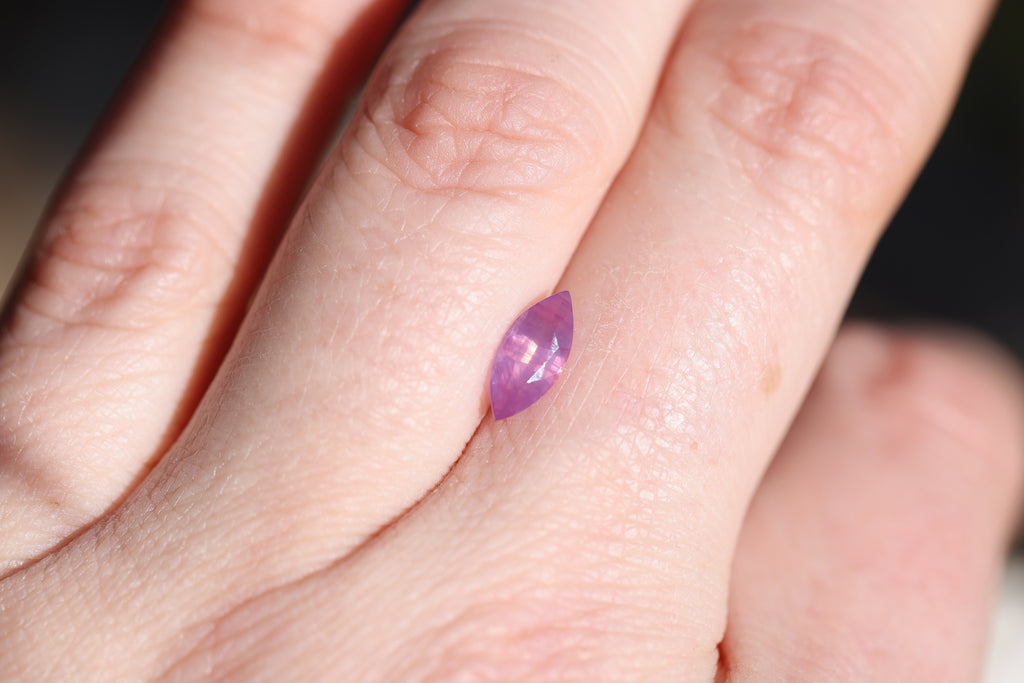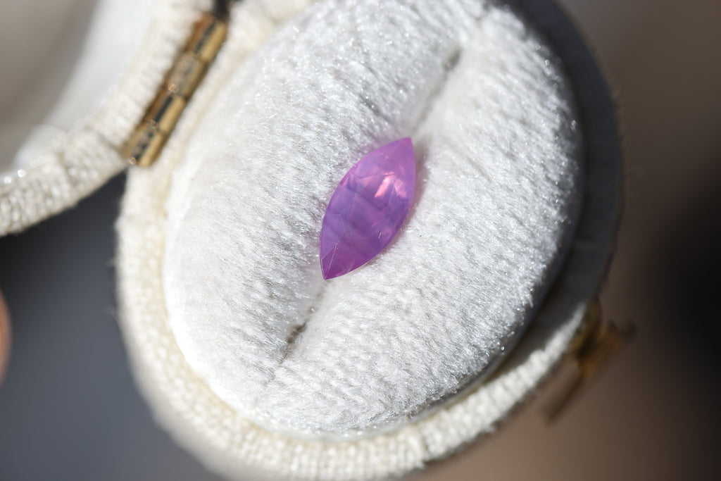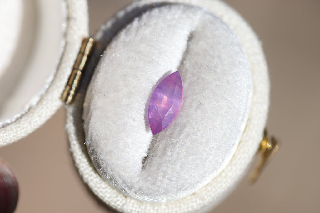 This absolutely stunning marquise opalescent sapphire is so, so magical! It is the prettiest pink and has just the most beautiful ethereal vibe!