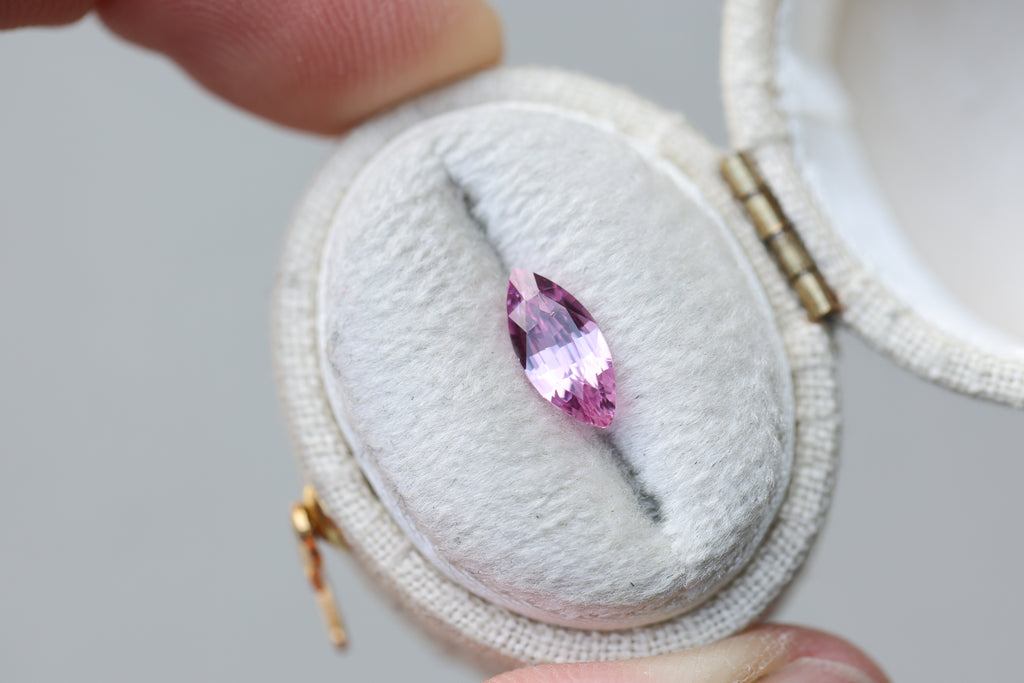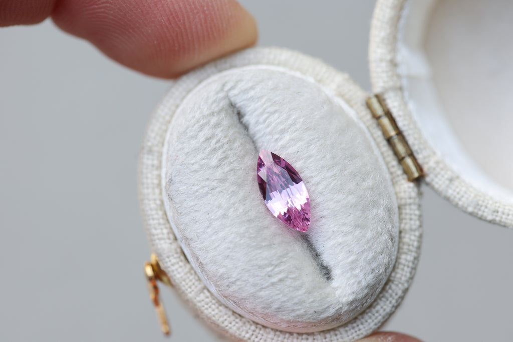 The absolute loveliest pink marquise sapphire! Such a beauty!