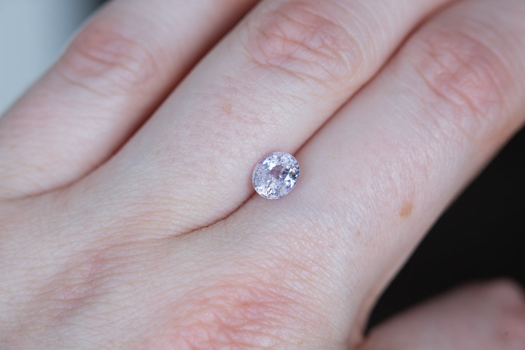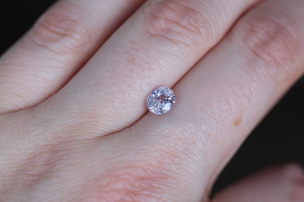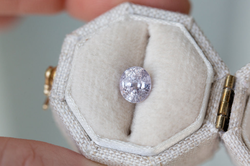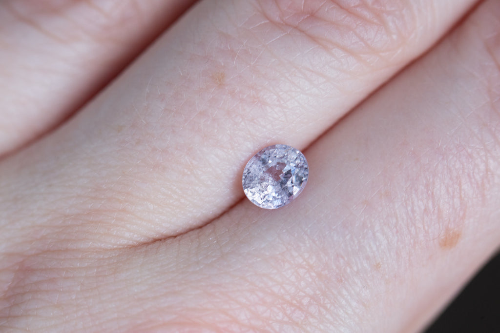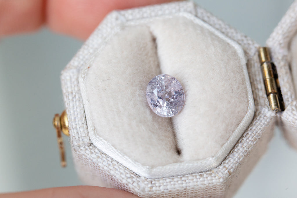 This light pink sapphire has lavender undertones and many tiny inclusions that make it a truly one of a kind stone.