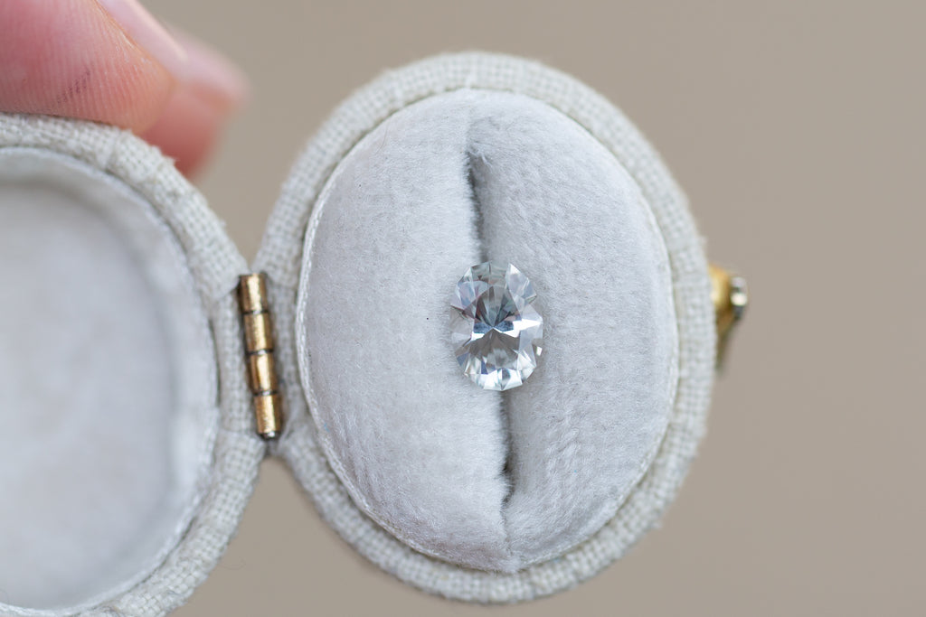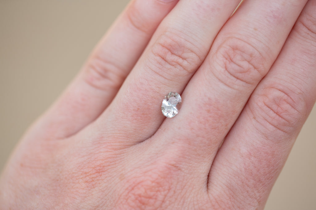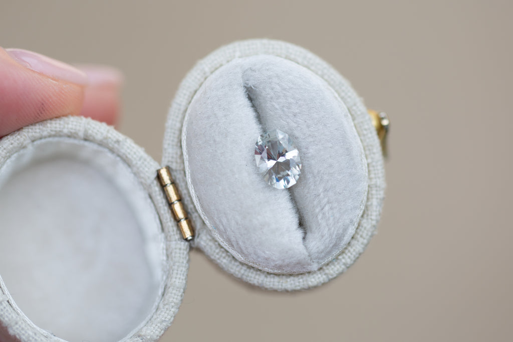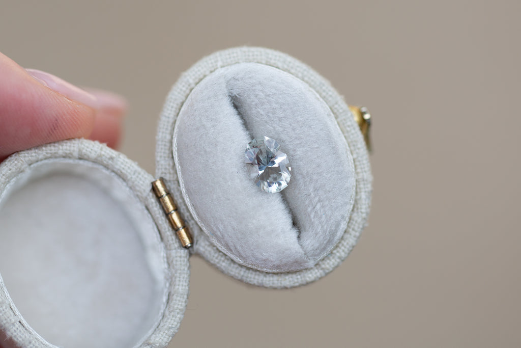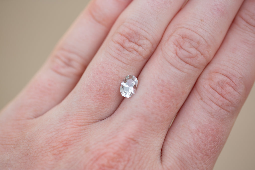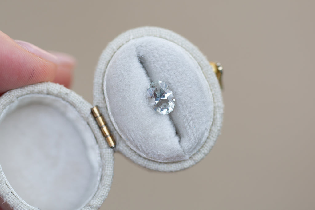 This stone is a gorgeous white sapphire with a hint of very light yellow in certain lighting. So pretty!