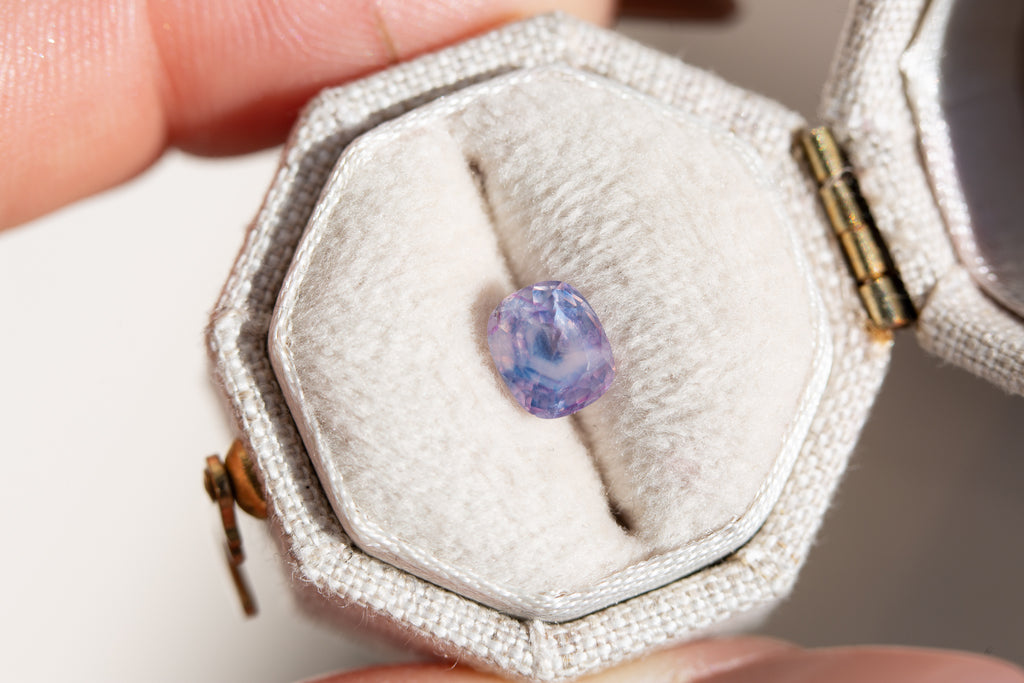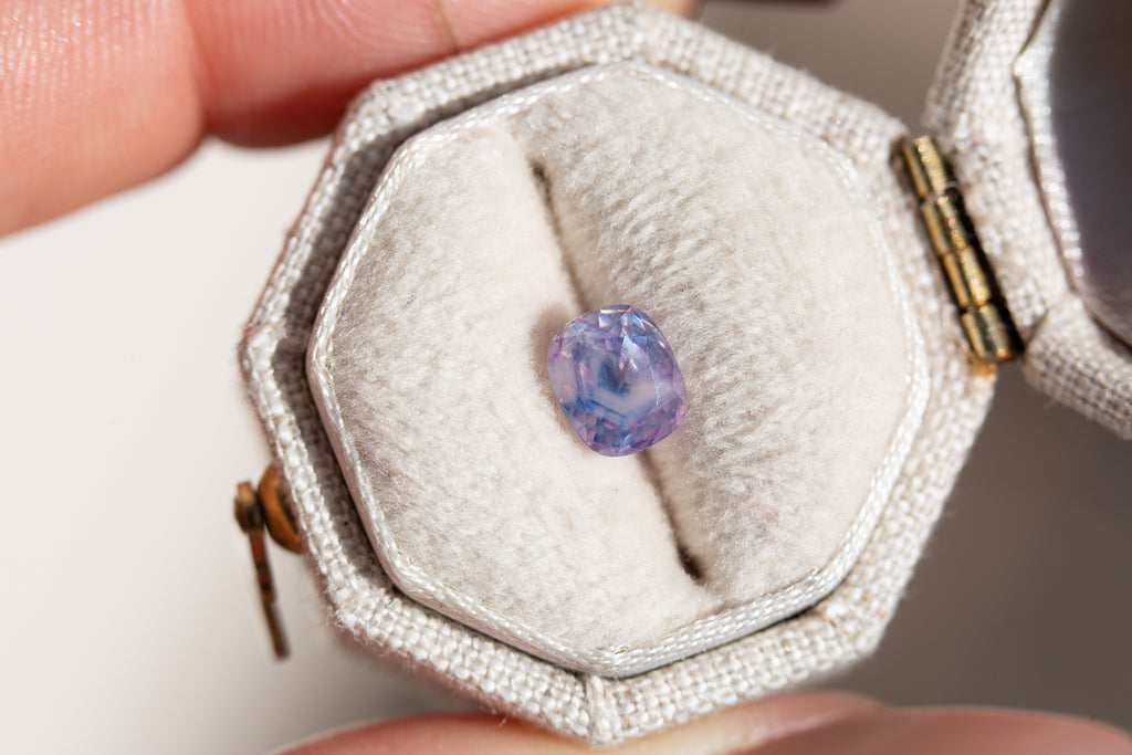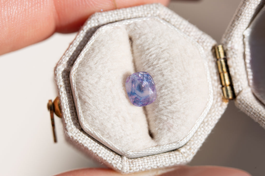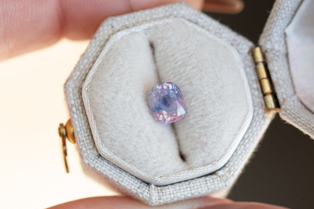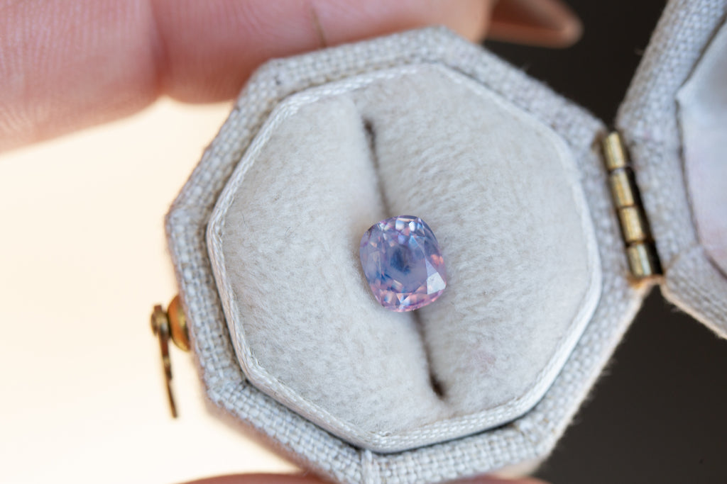 1.16ct cushion cut opalescent blue, pink lavender sapphire