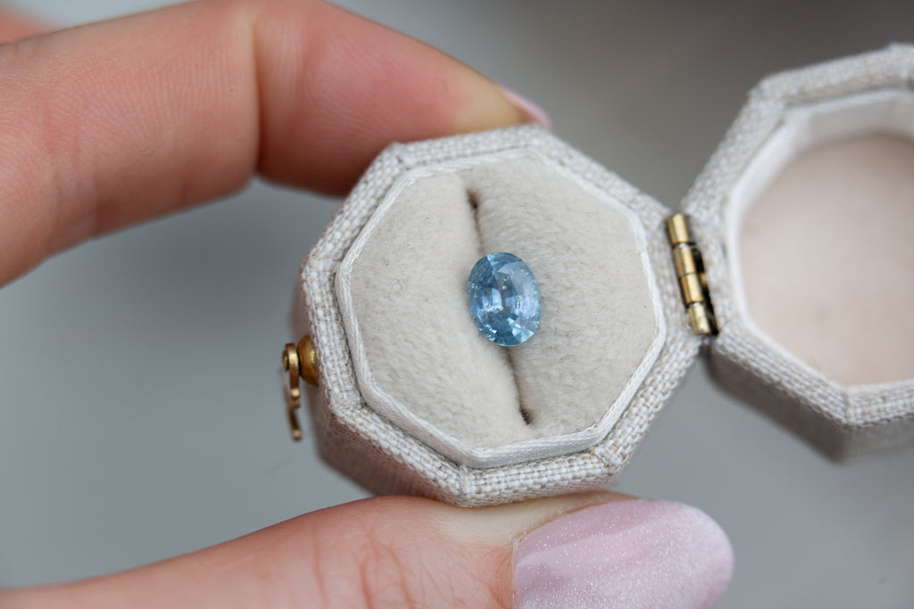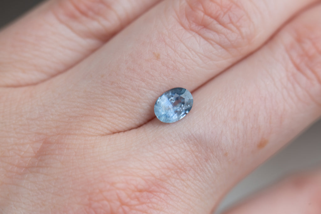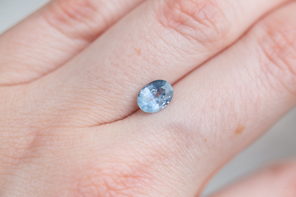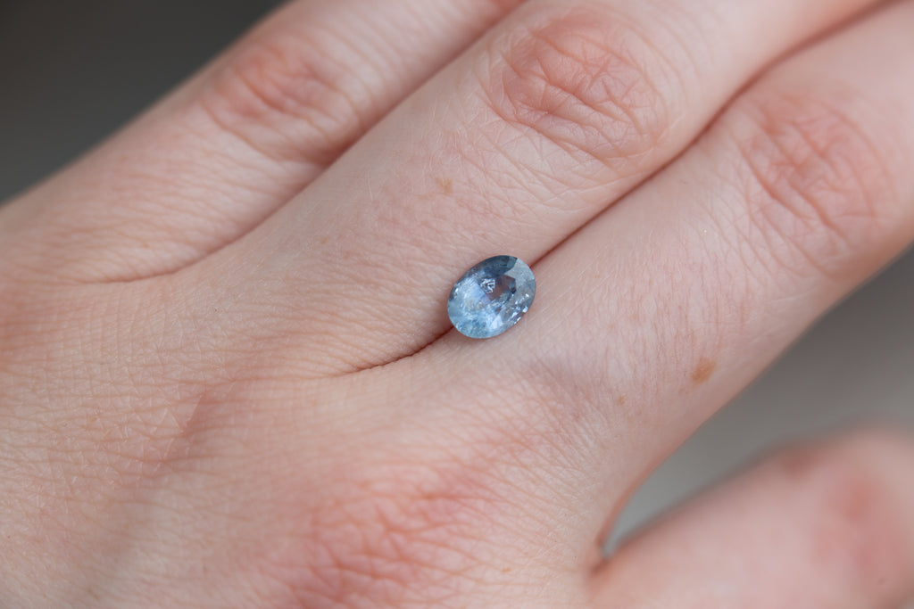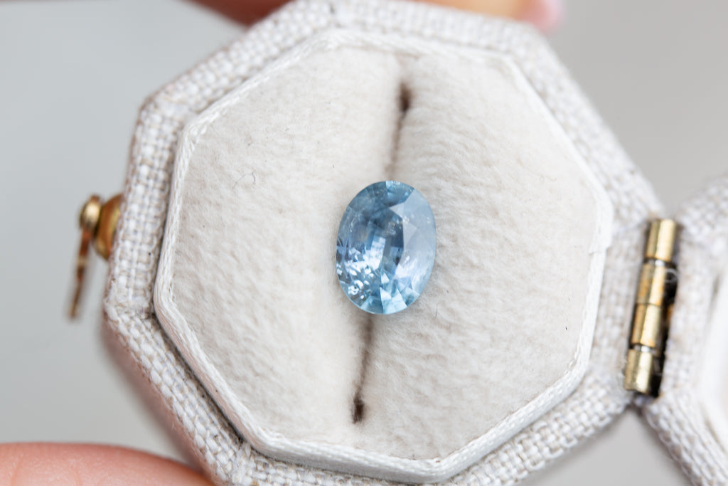 This medium blue oval sapphire is a stunner. With inclusions throughout that add a unique depth and its larger size this stone will make a beautiful stand out piece.