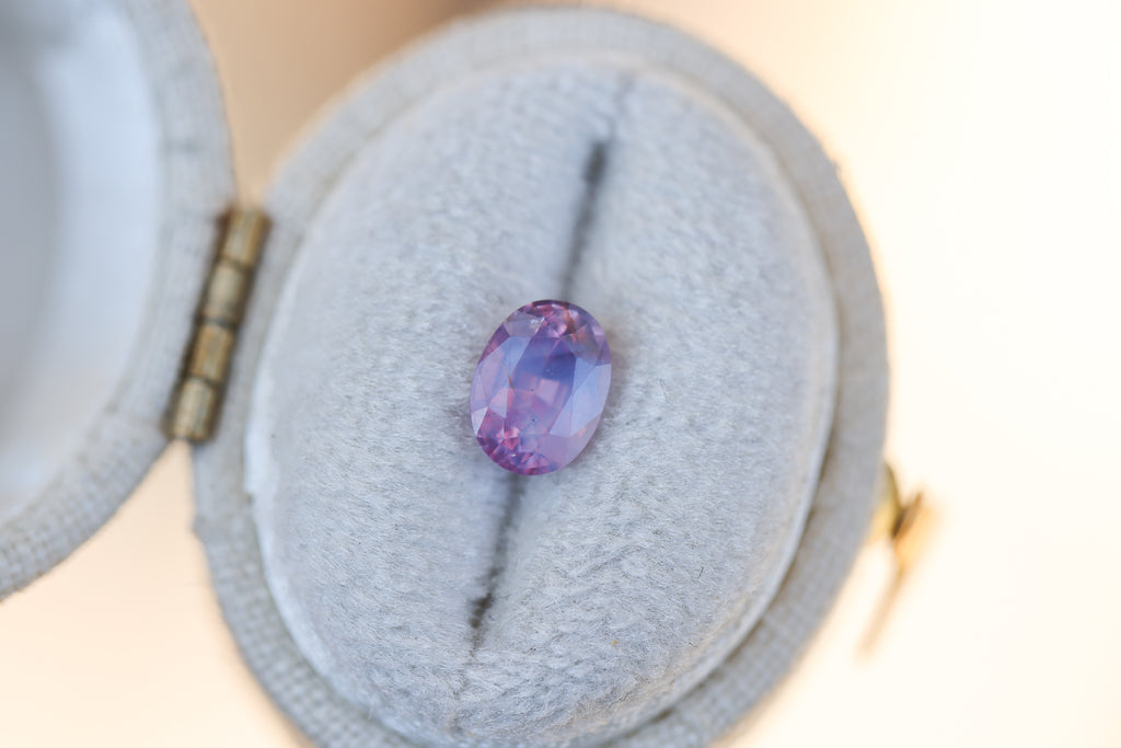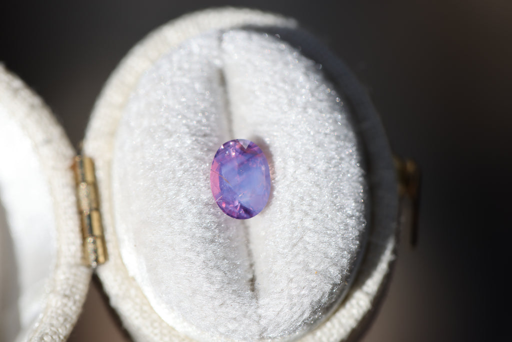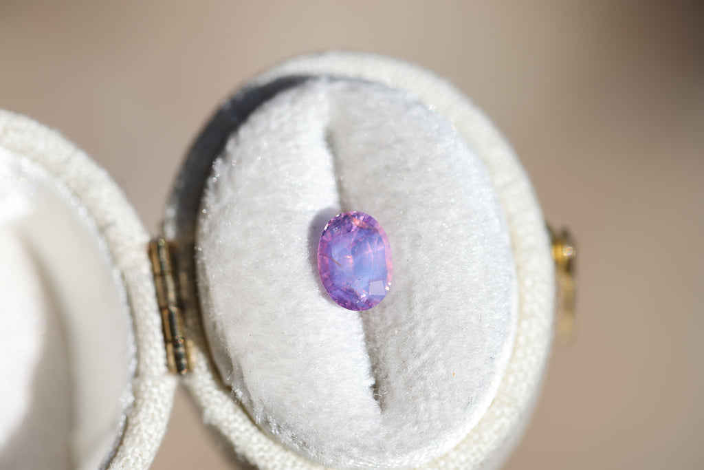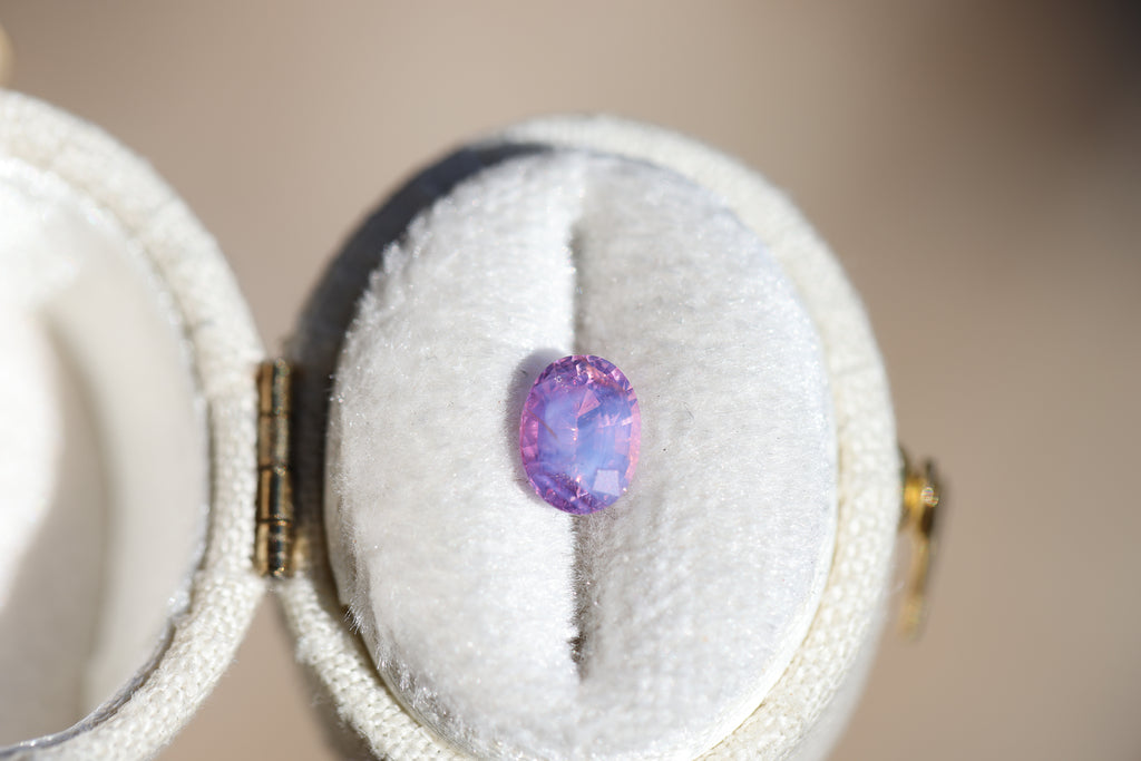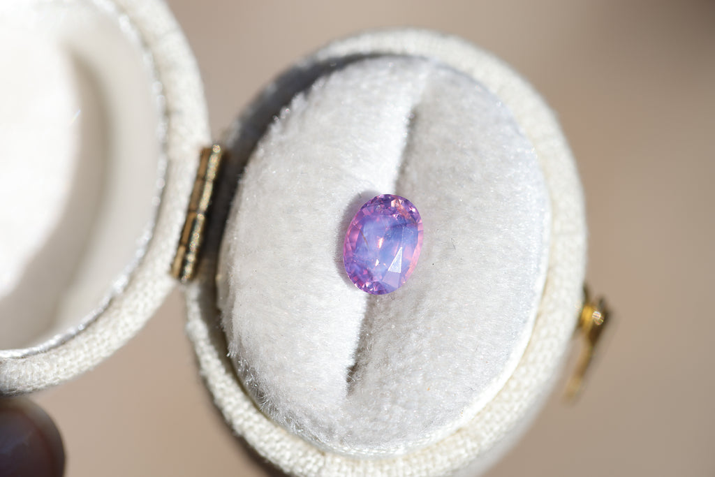 Such a pretty oval opalescent pink purple sapphire! Like a cotton candy gem!