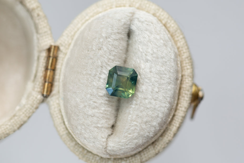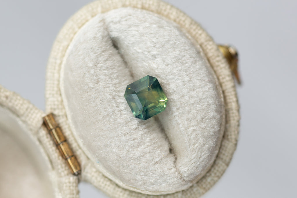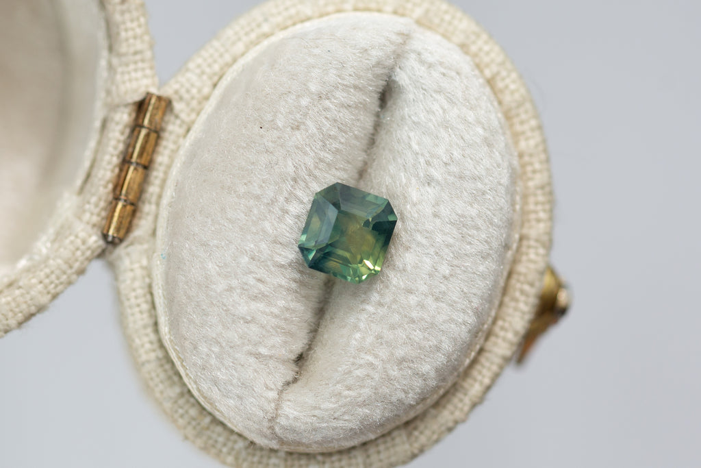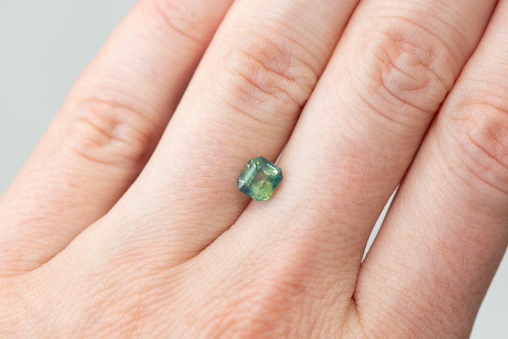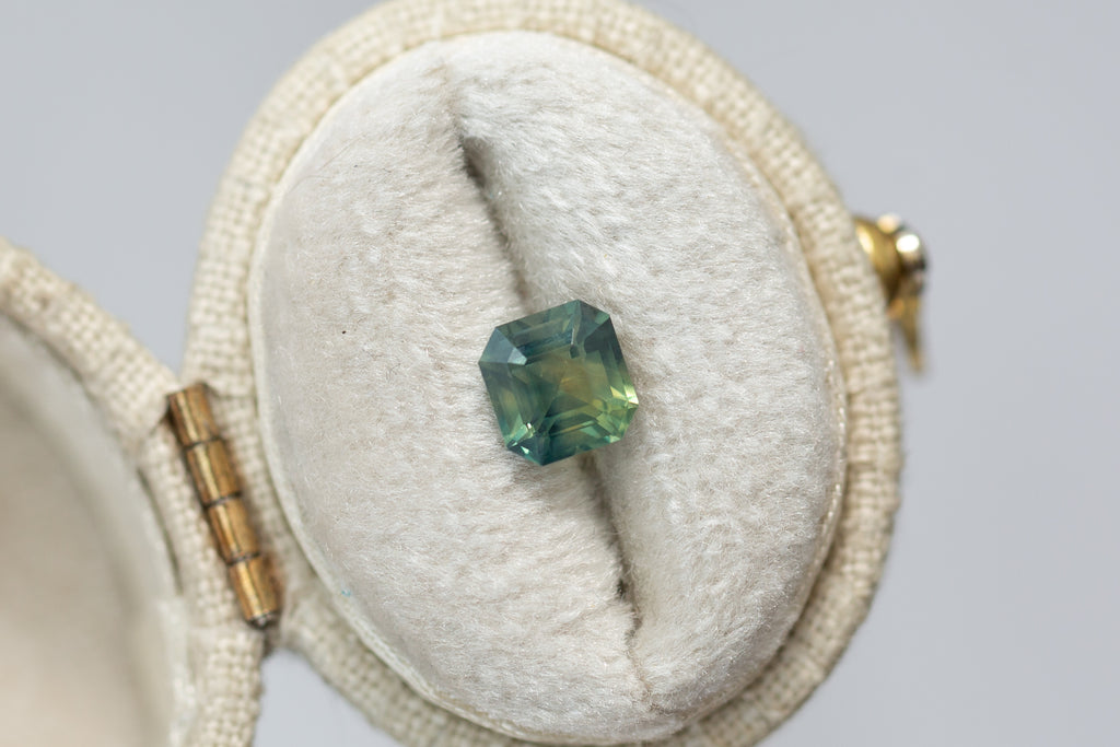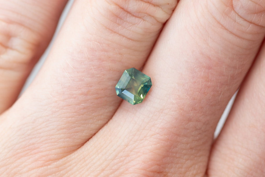 1.26ct Asscher Cut Opalescent Teal Yellow Green Sapphire