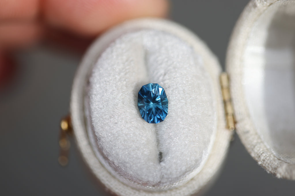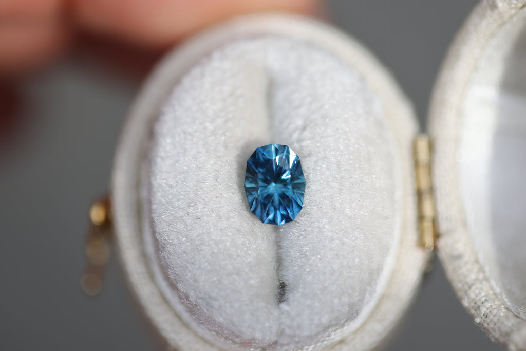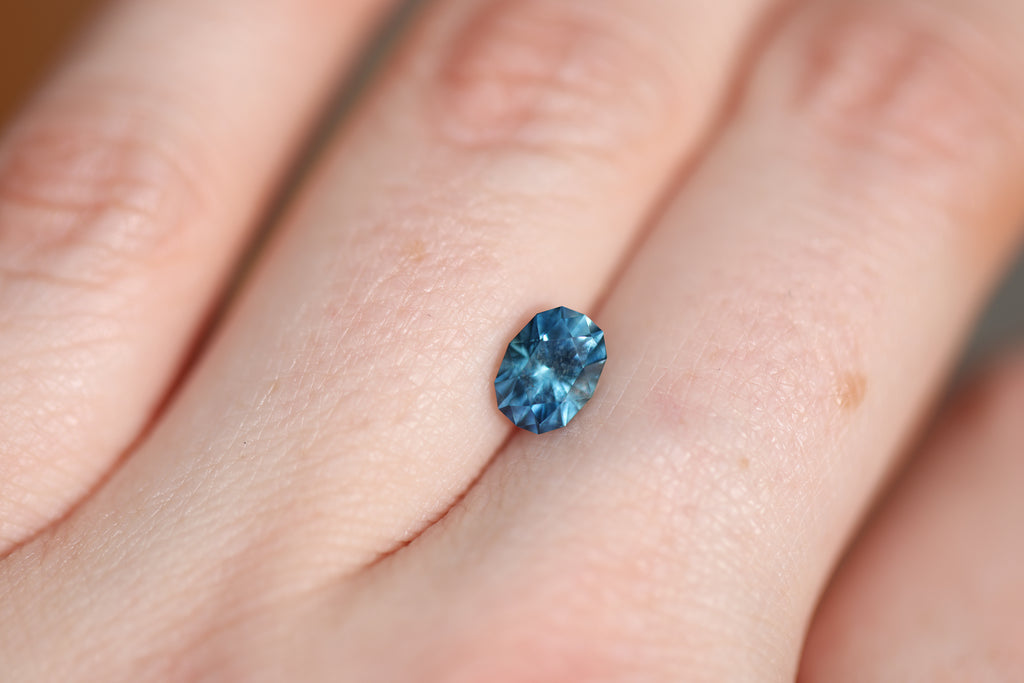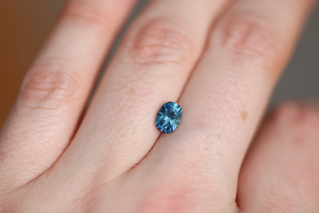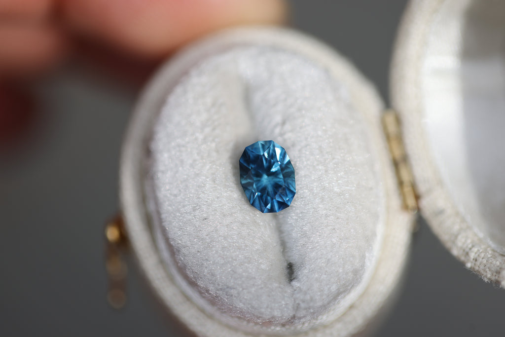 This gorgeous oval blue teal sapphire has such stunning coloring and the most incredible faceting!