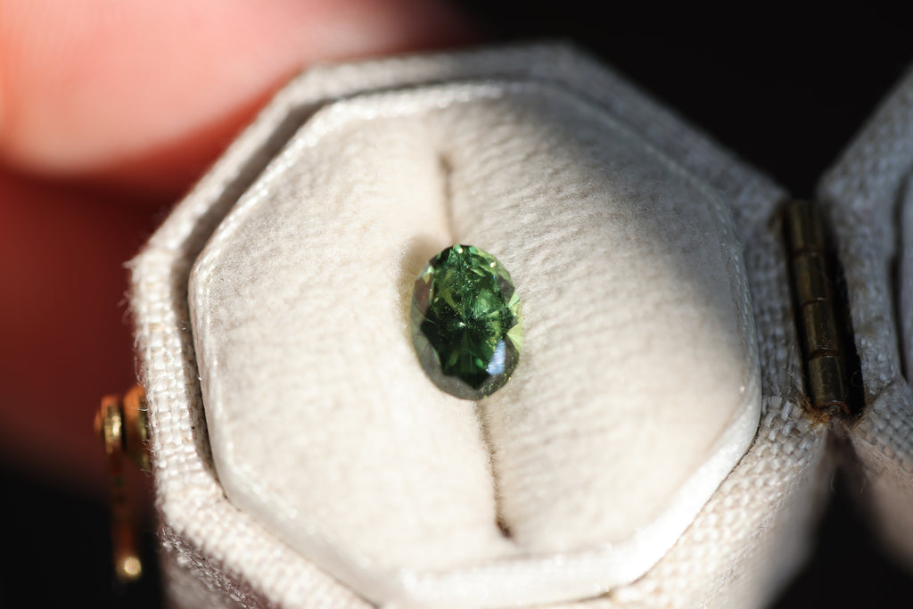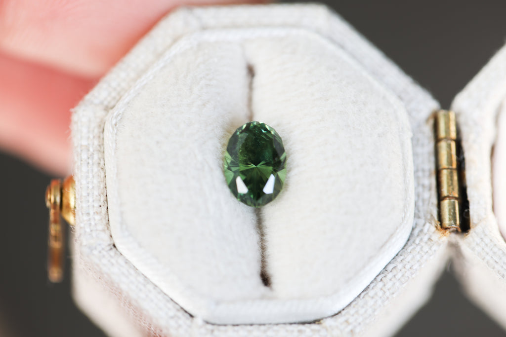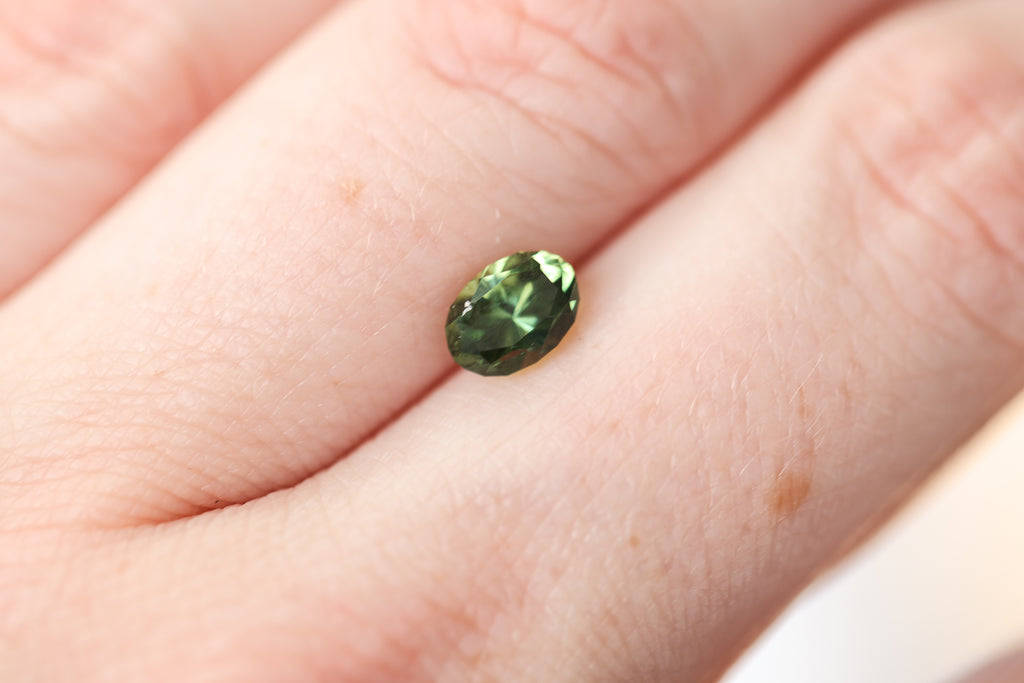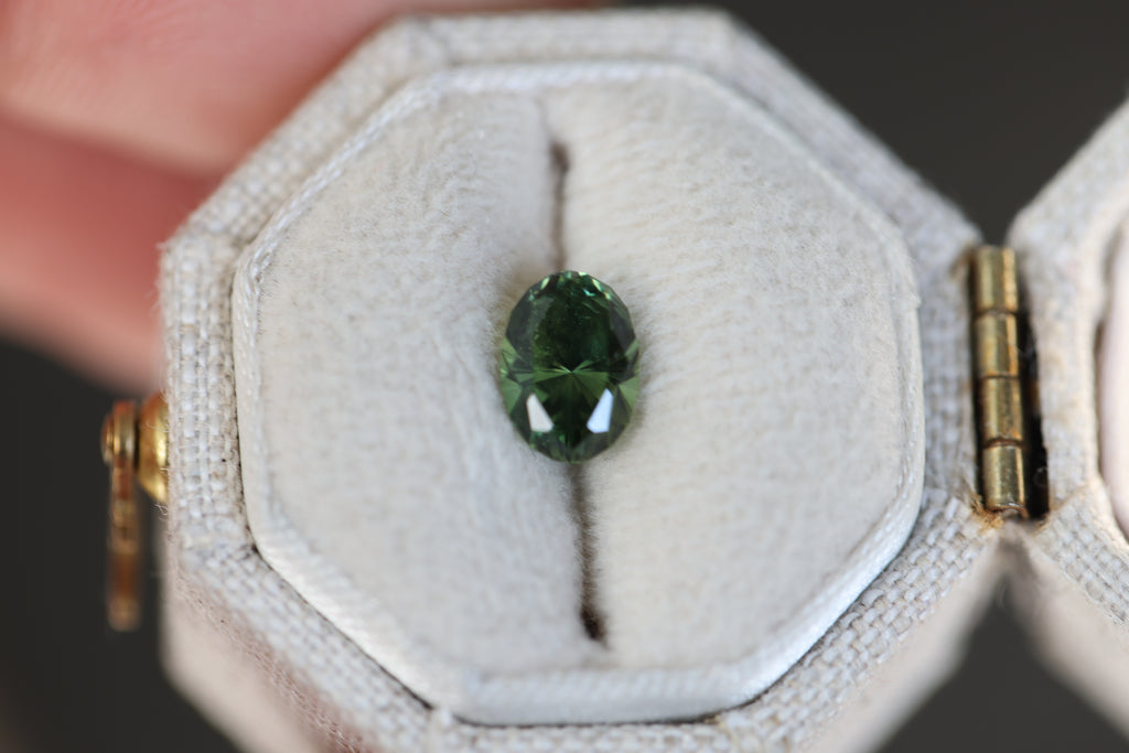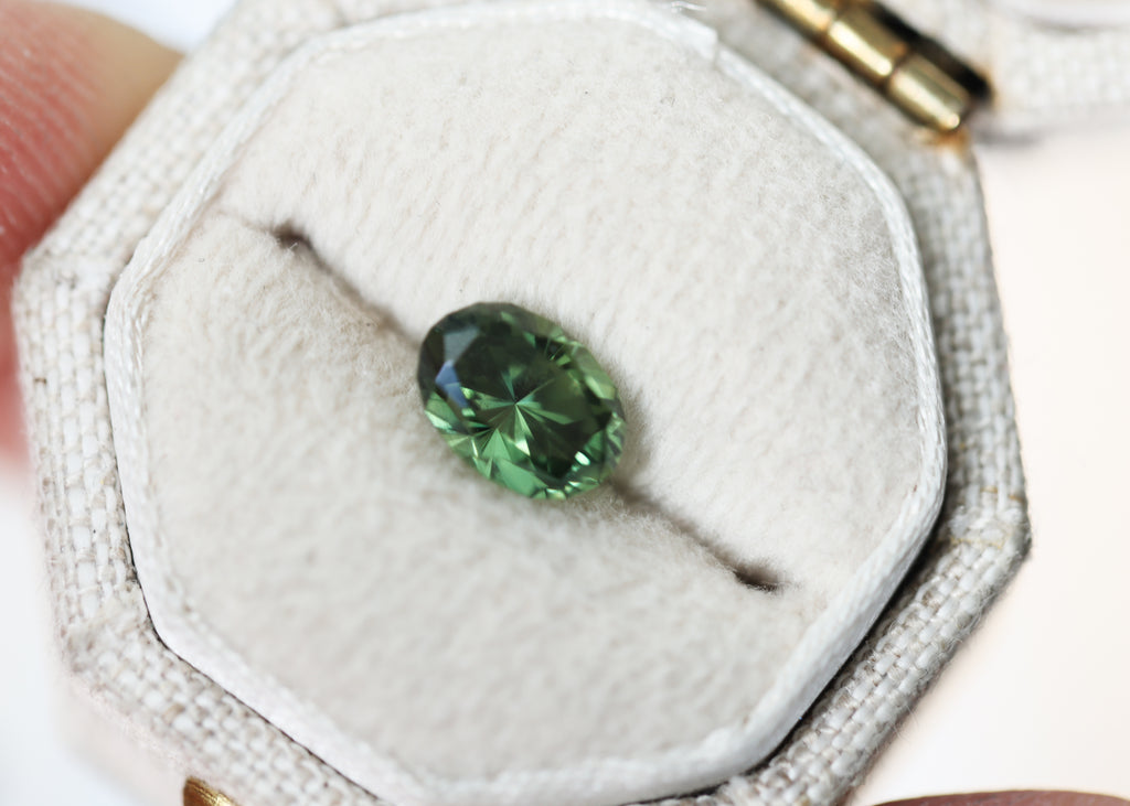 1.29ct oval green sapphire, Regal Radiant cut by John Dyer