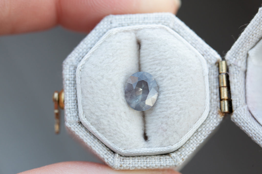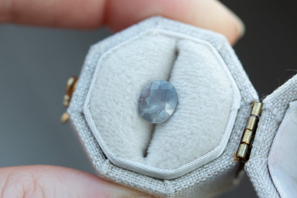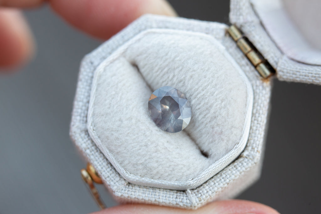 This beautiful sapphire has some really unique and rare grey purple/peach coloring and an ethereal opaqueness to it - such a special stone!