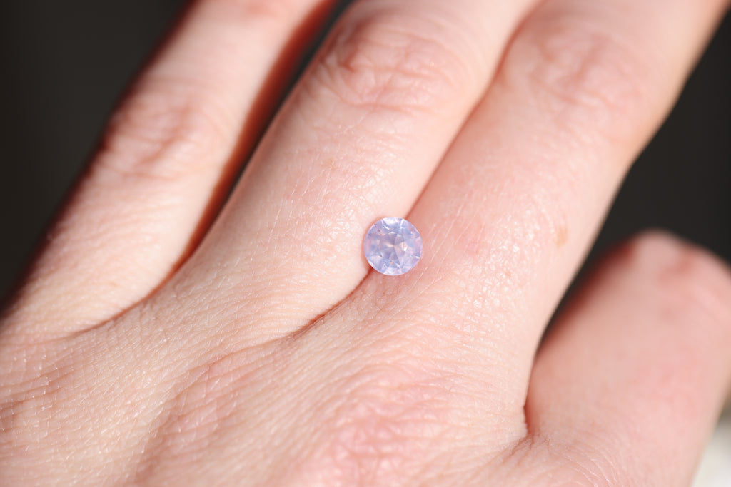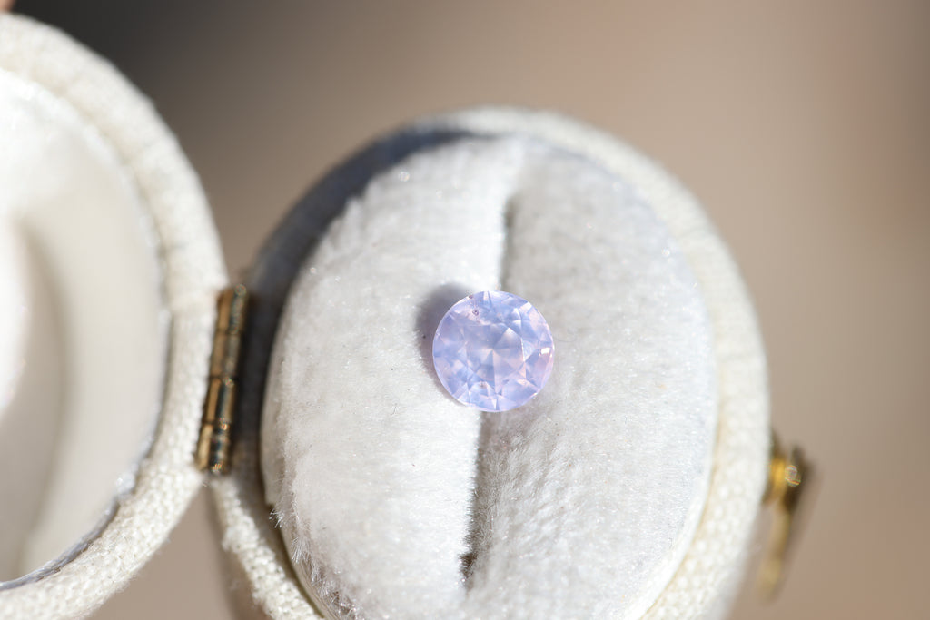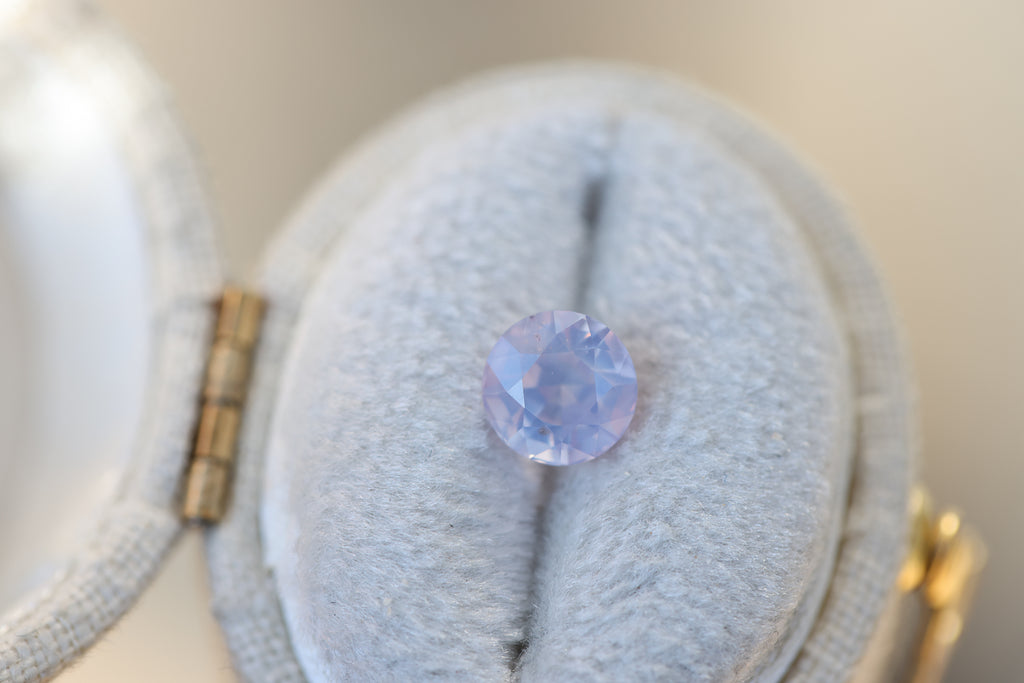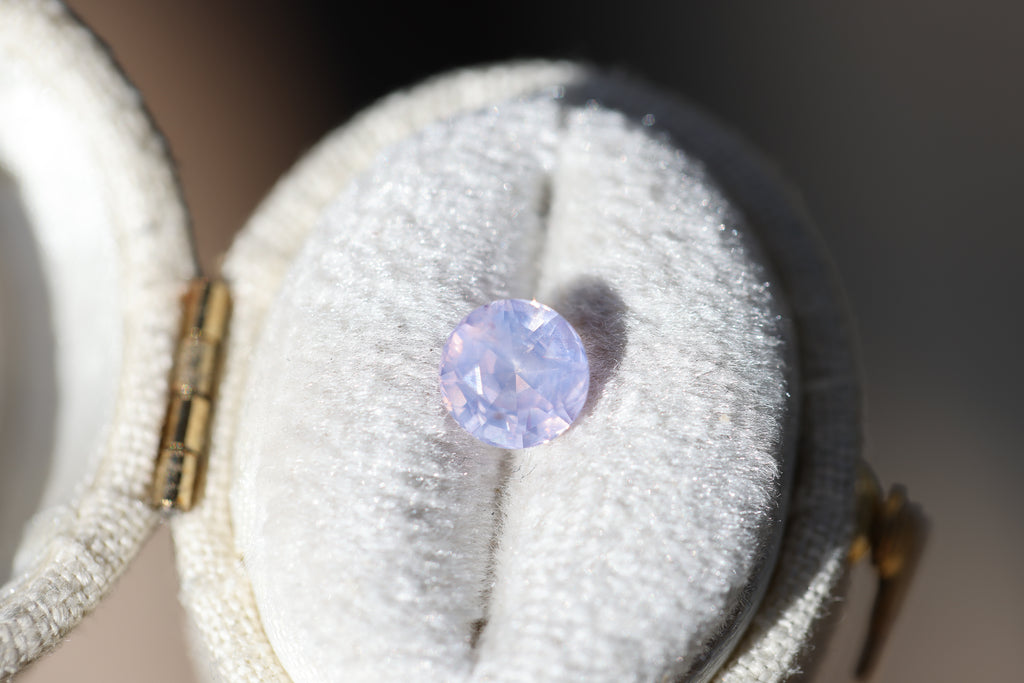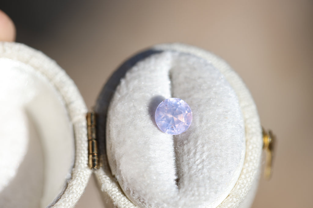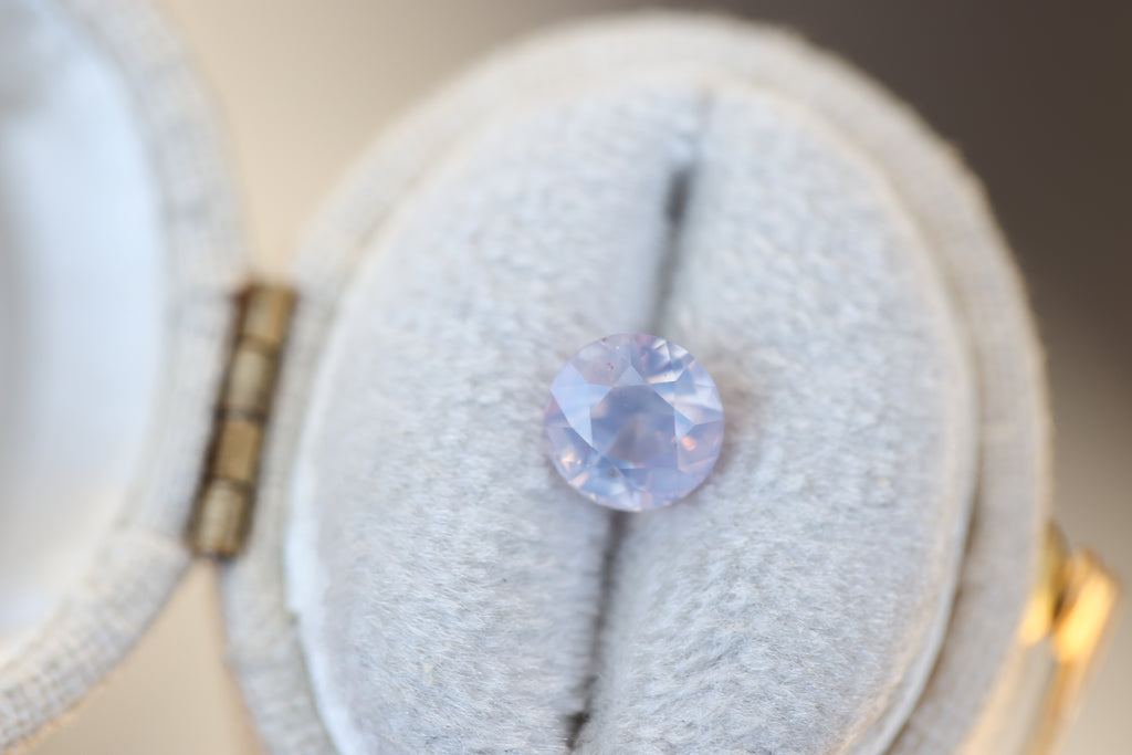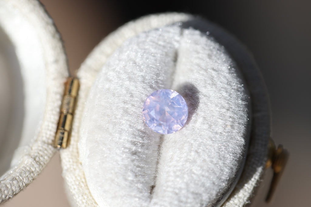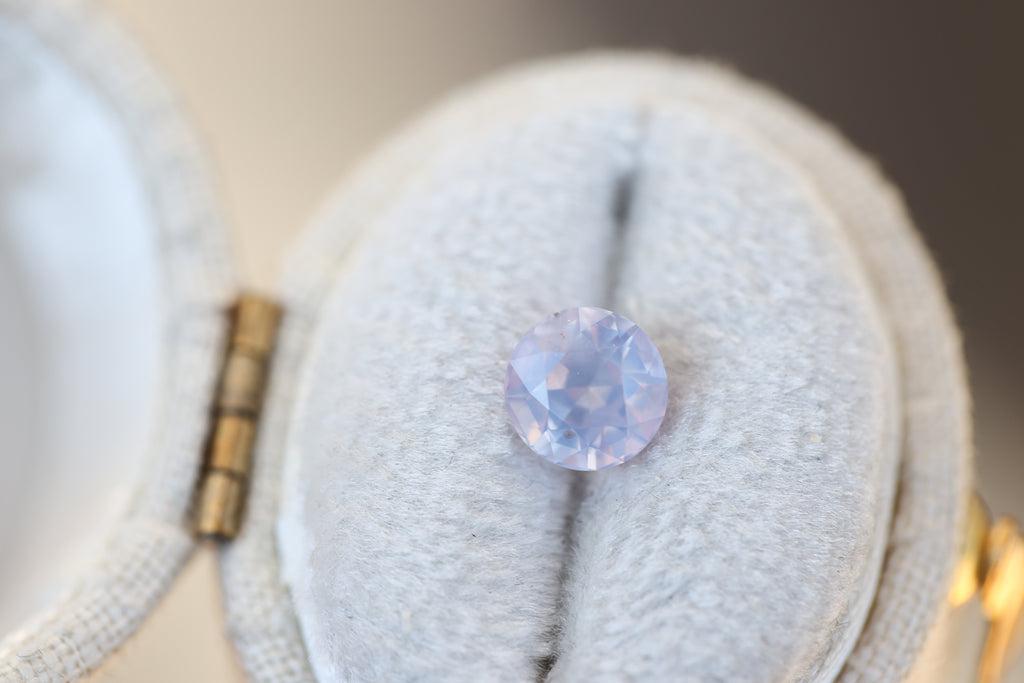 This absolute stunner is a round opalescent sapphire with light pinky/lavender coloring and is just such a magical ethereal gem!
