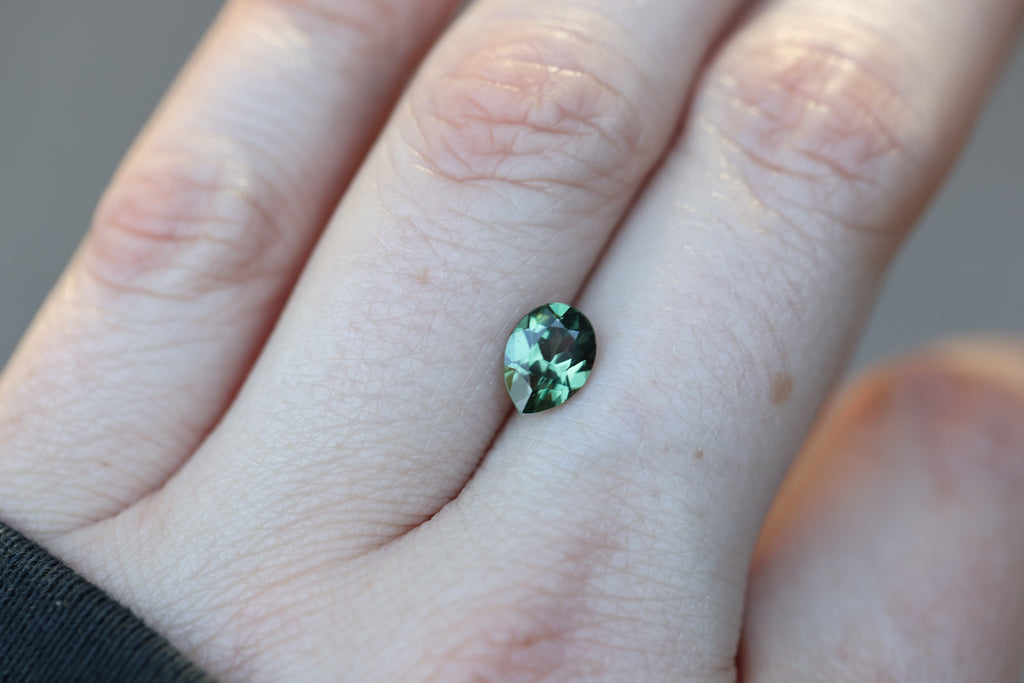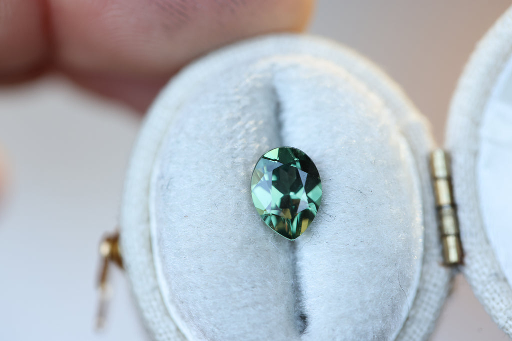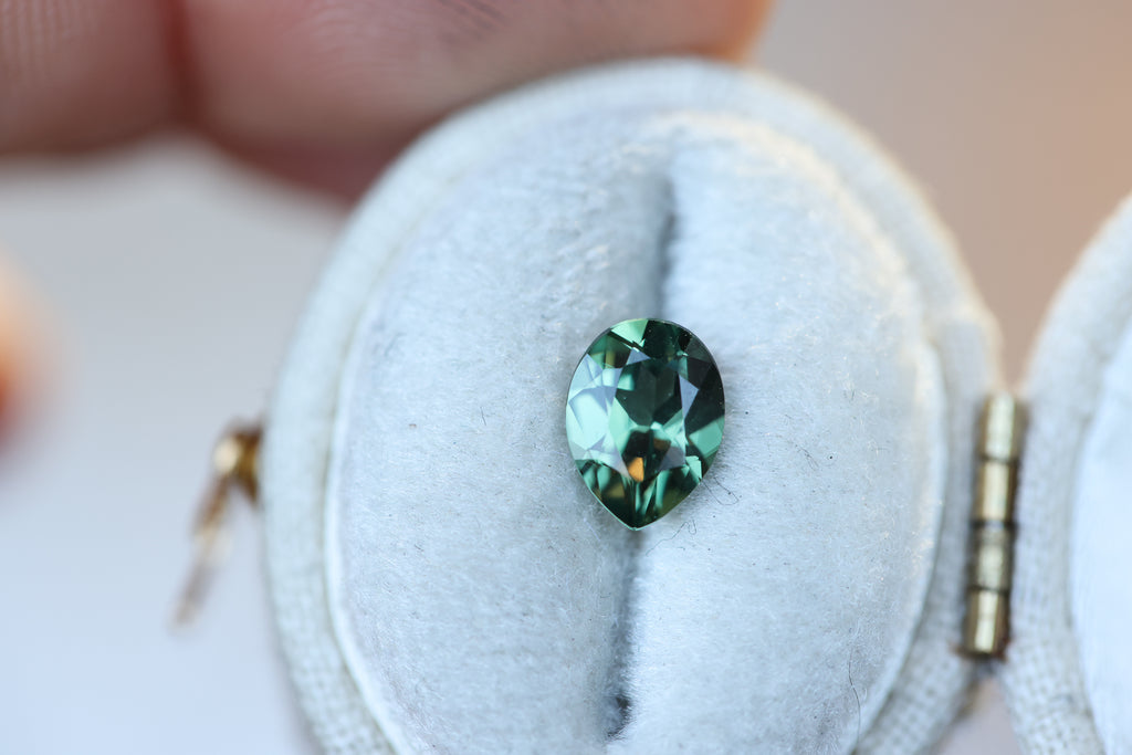 This beautiful vibrant sapphire is the prettiest teal green with lots of sparkle!