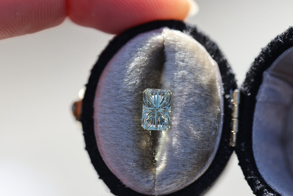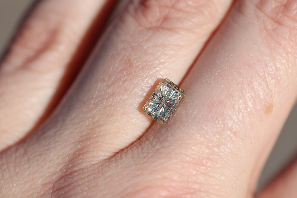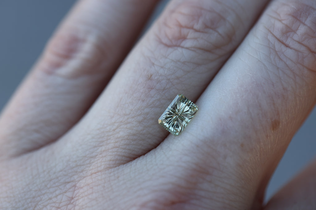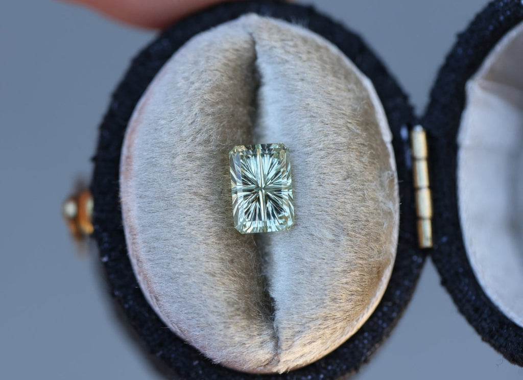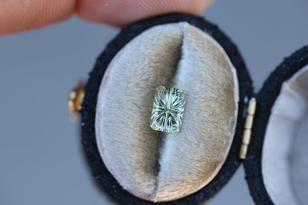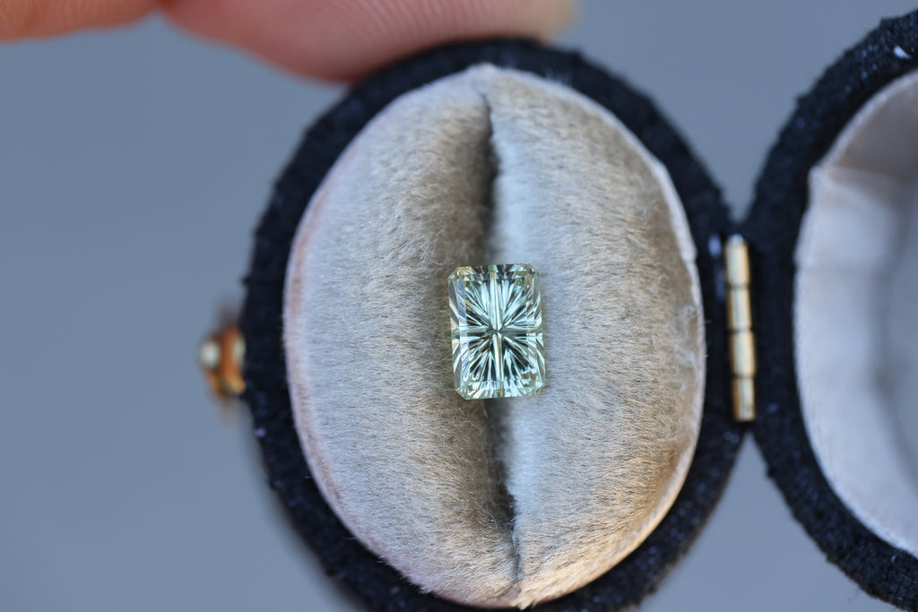 1.46ct yellow green rectangle sapphire, Starbrite cut by John Dyer