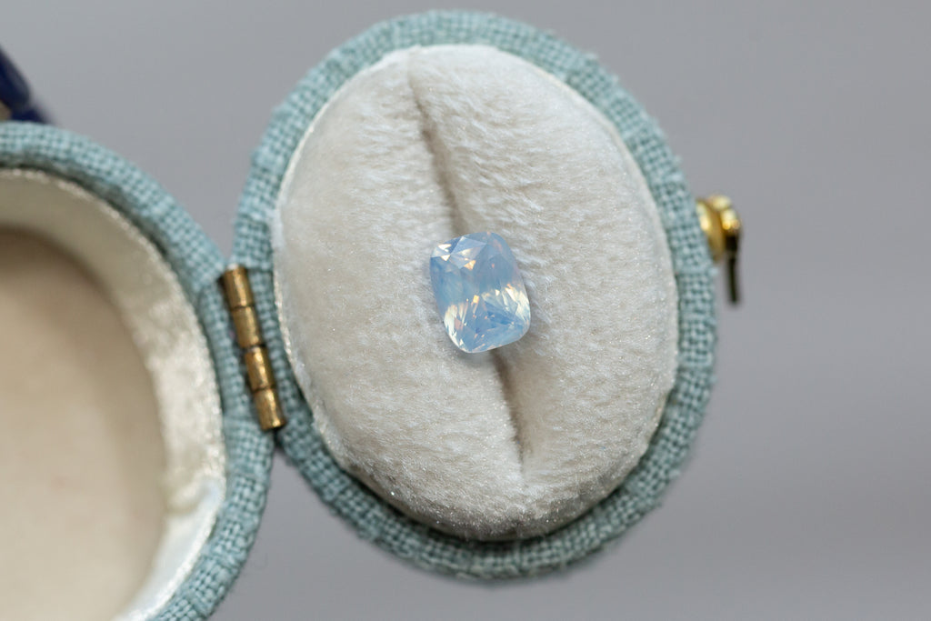 1.53ct Cushion Opalescent Silver Blue Peach Sapphire