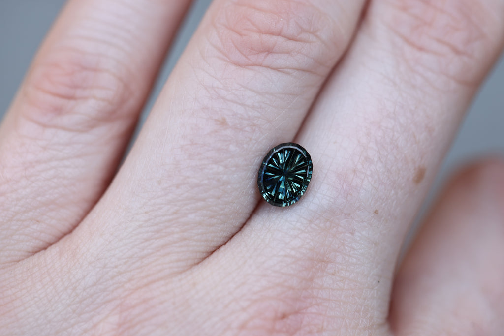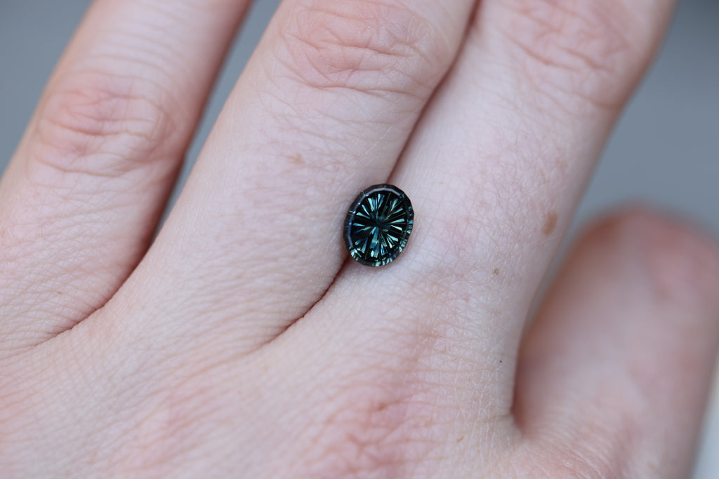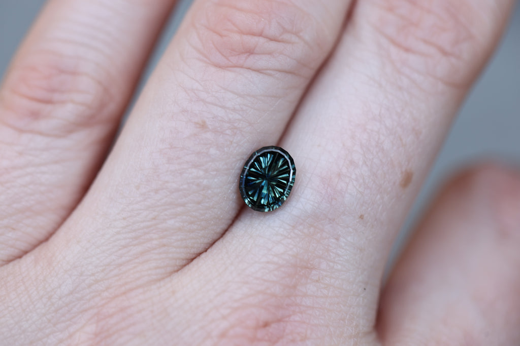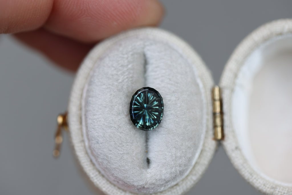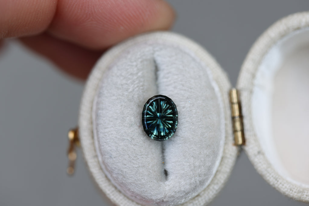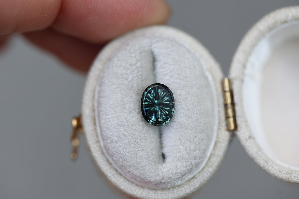 1.54ct oval deep teal green sapphire - Starbrite cut by John Dyer