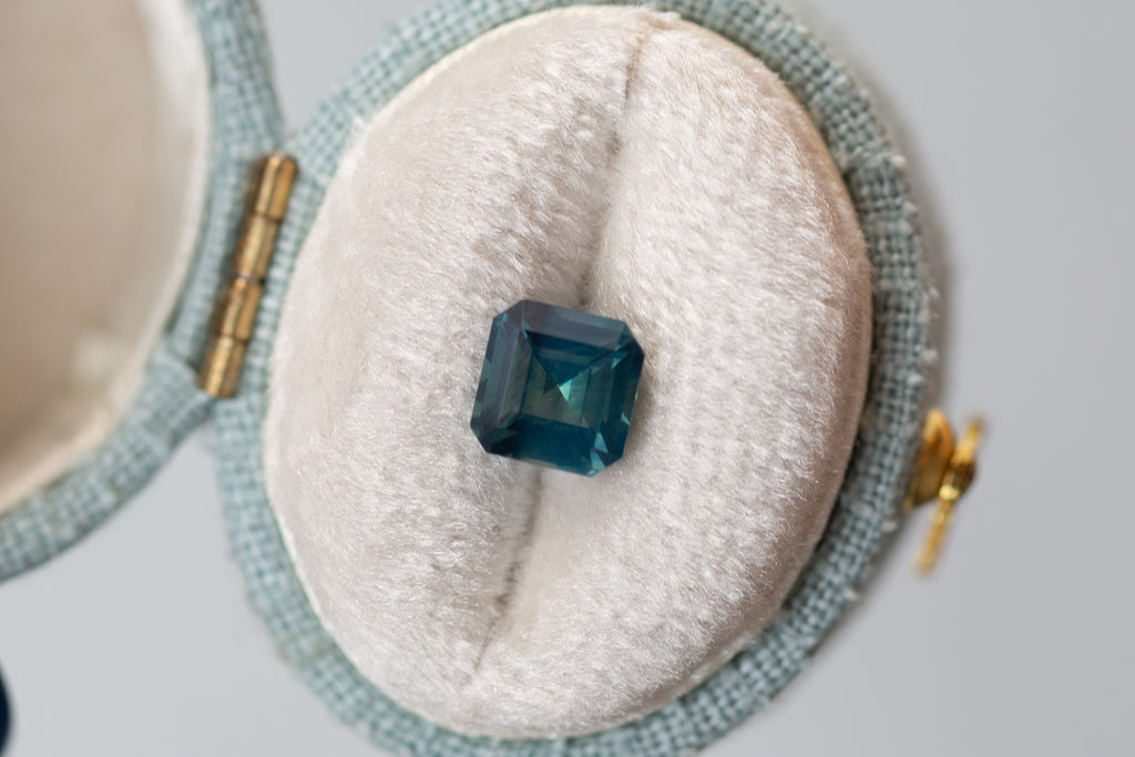 1.55ct Asscher Cut Aqua Teal Sapphire