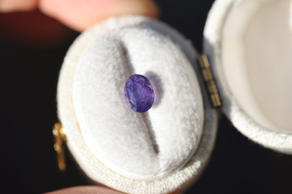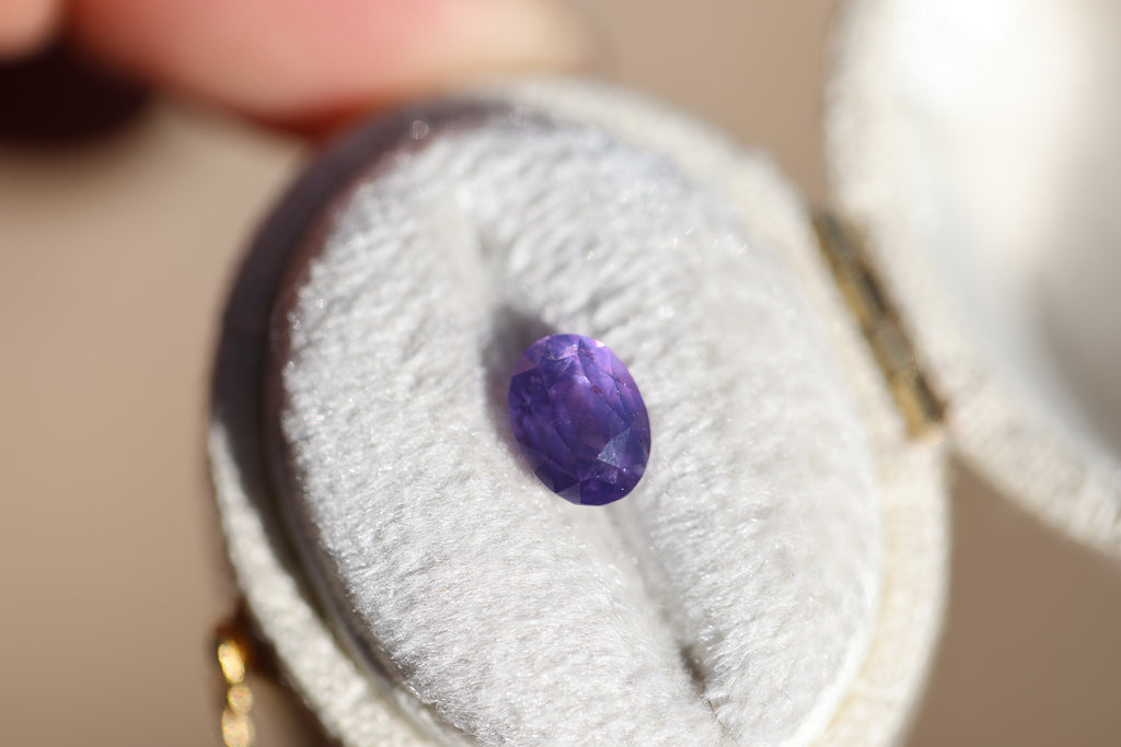 This absolute beauty is an oval opalescent purple sapphire with such a magical regal vibe - stunning!
