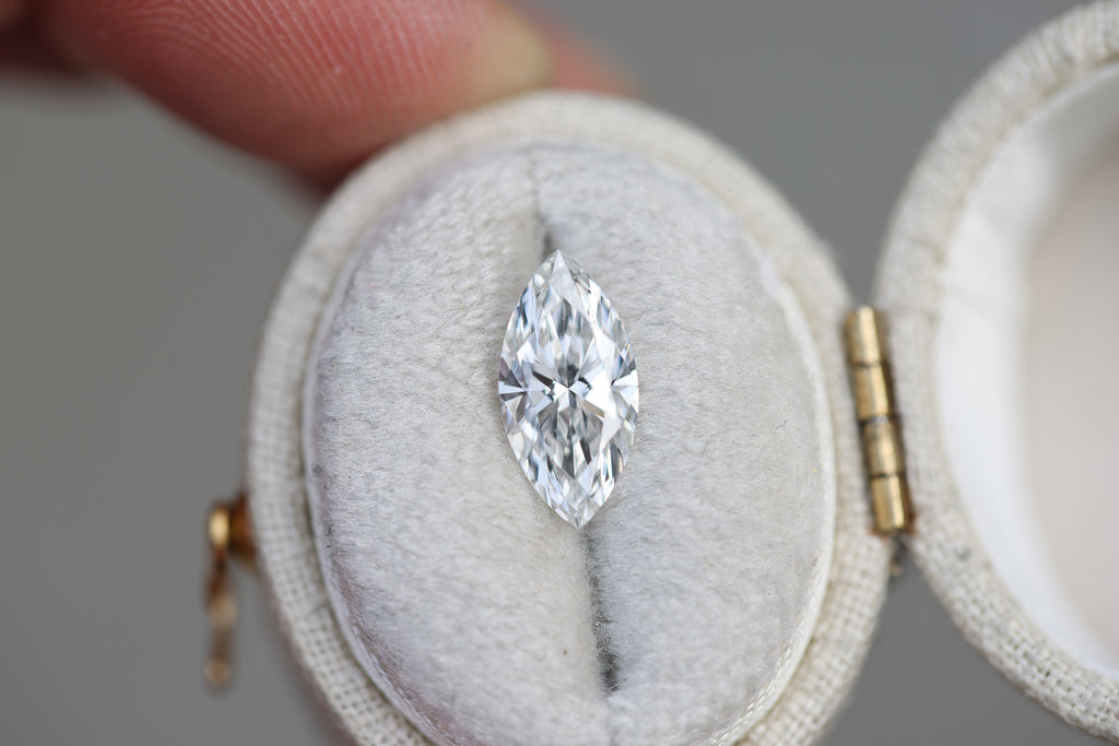 This stunning marquise lab diamond is full of gorgeous sparkle!
