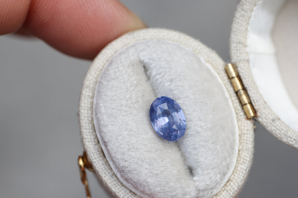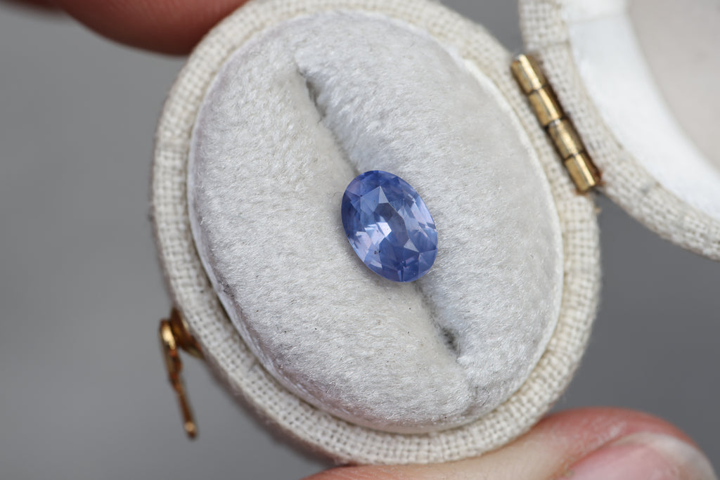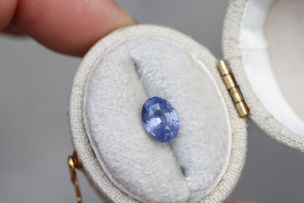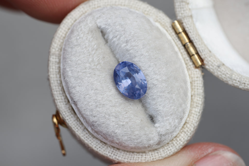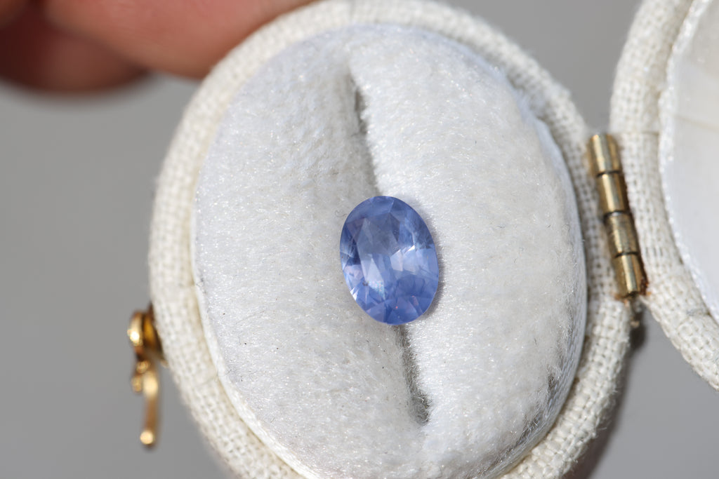 This gorgeous oval blue sapphire has the dreamiest opalescence! Such a beauty!