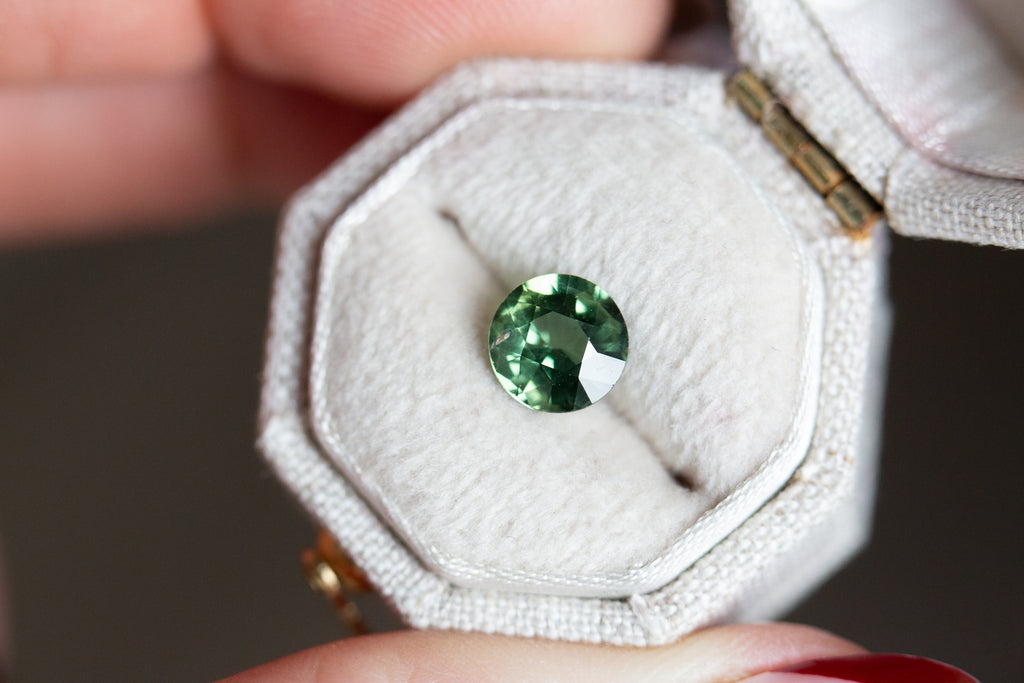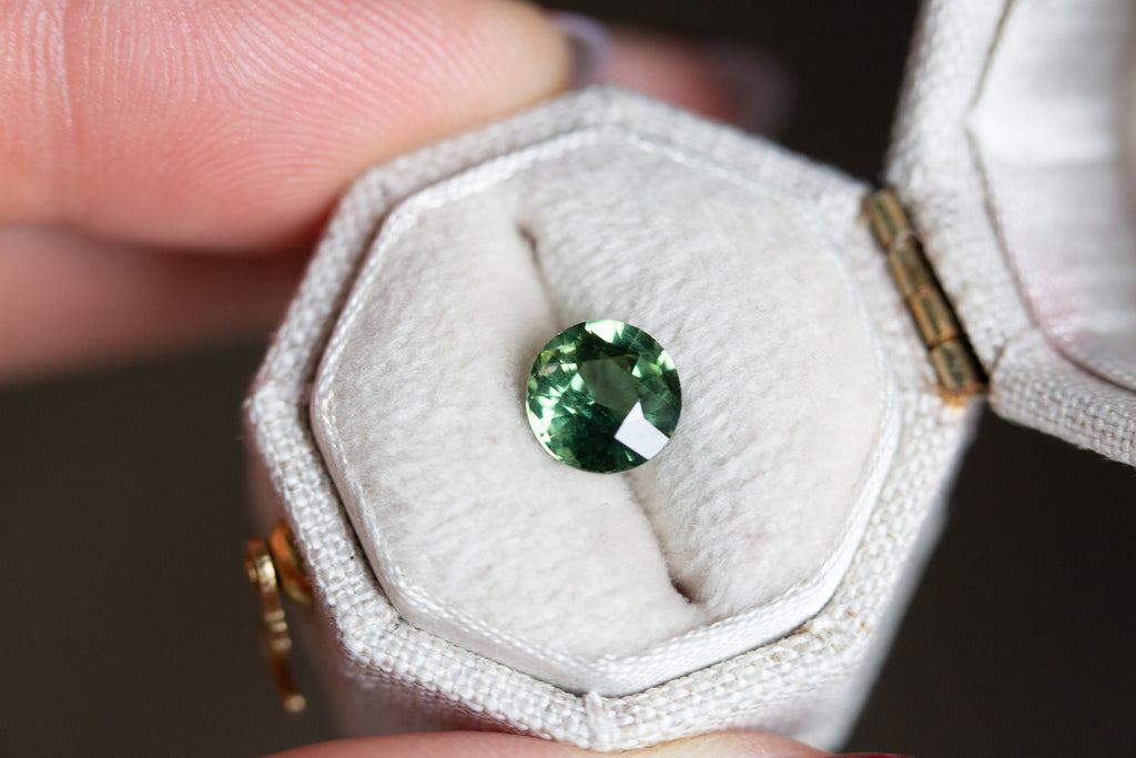 This beautiful medium green sapphire is rich in color and comes with lots of sparkle!