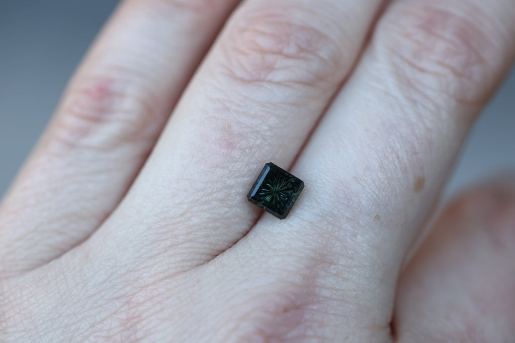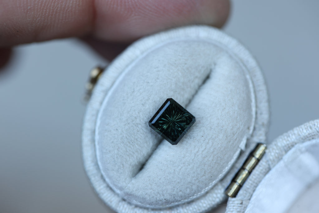 1.63ct dark blue green sapphire, Starbrite cut by John Dyer