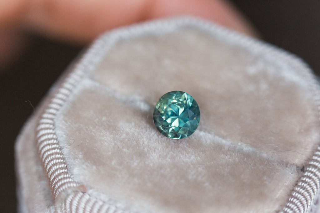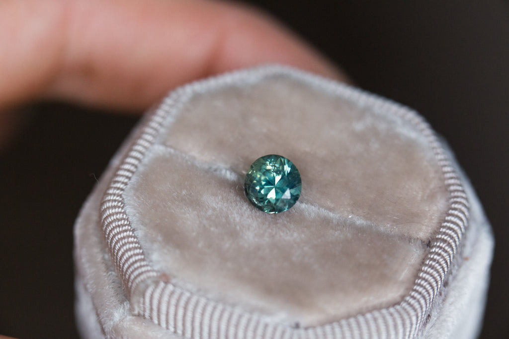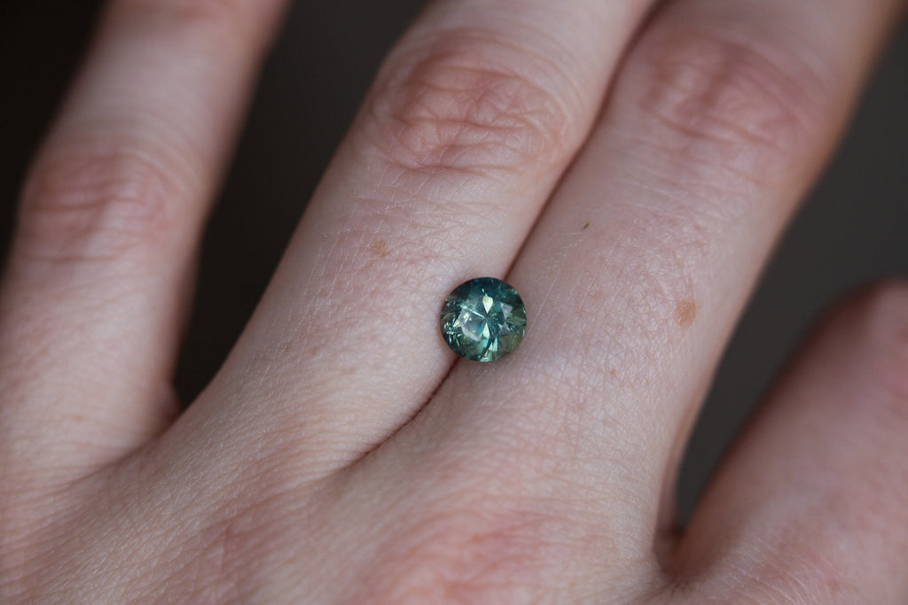 1.65ct, 6.5mm. This stone is mostly round but is slightly oval in cut therefore it is priced lower to account for the off center shape.