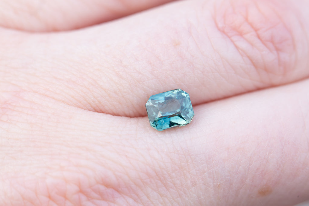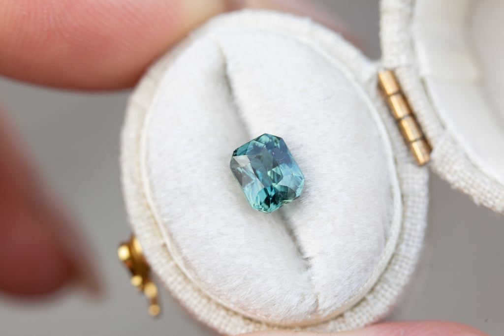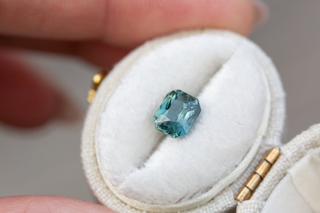 1.67ct radiant cut teal blue sapphire