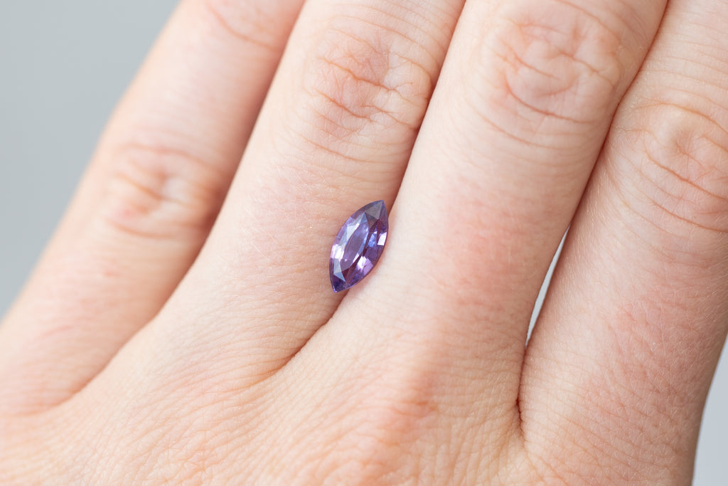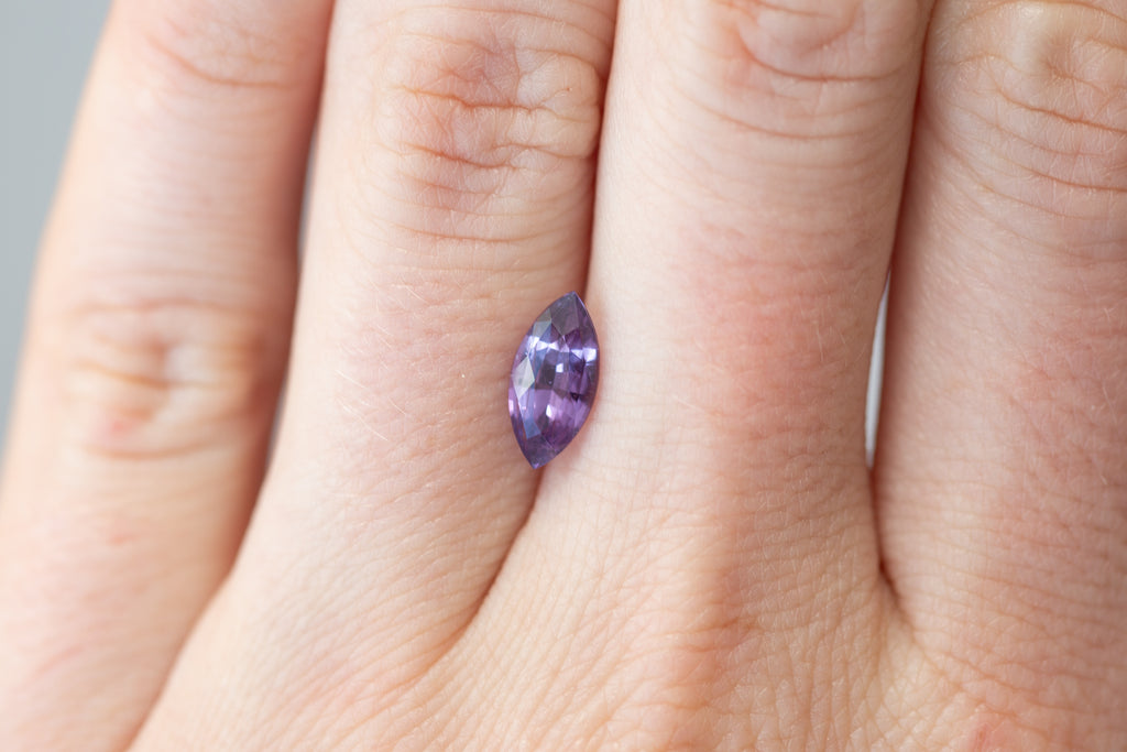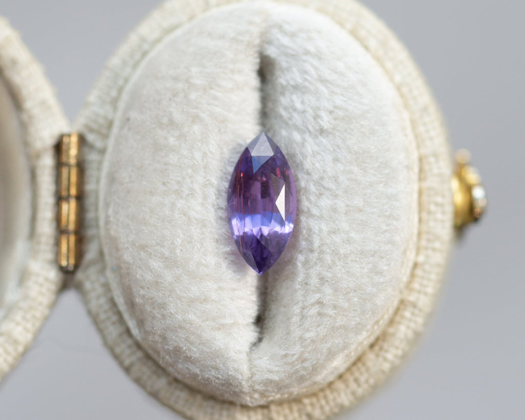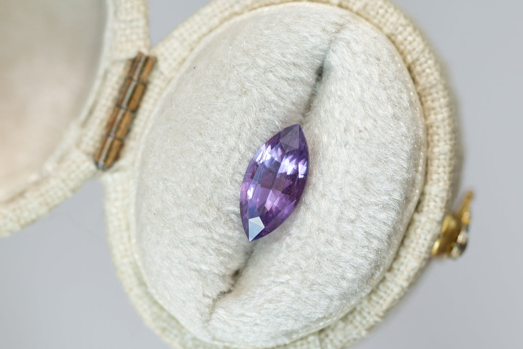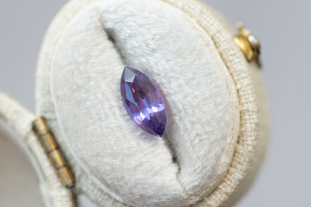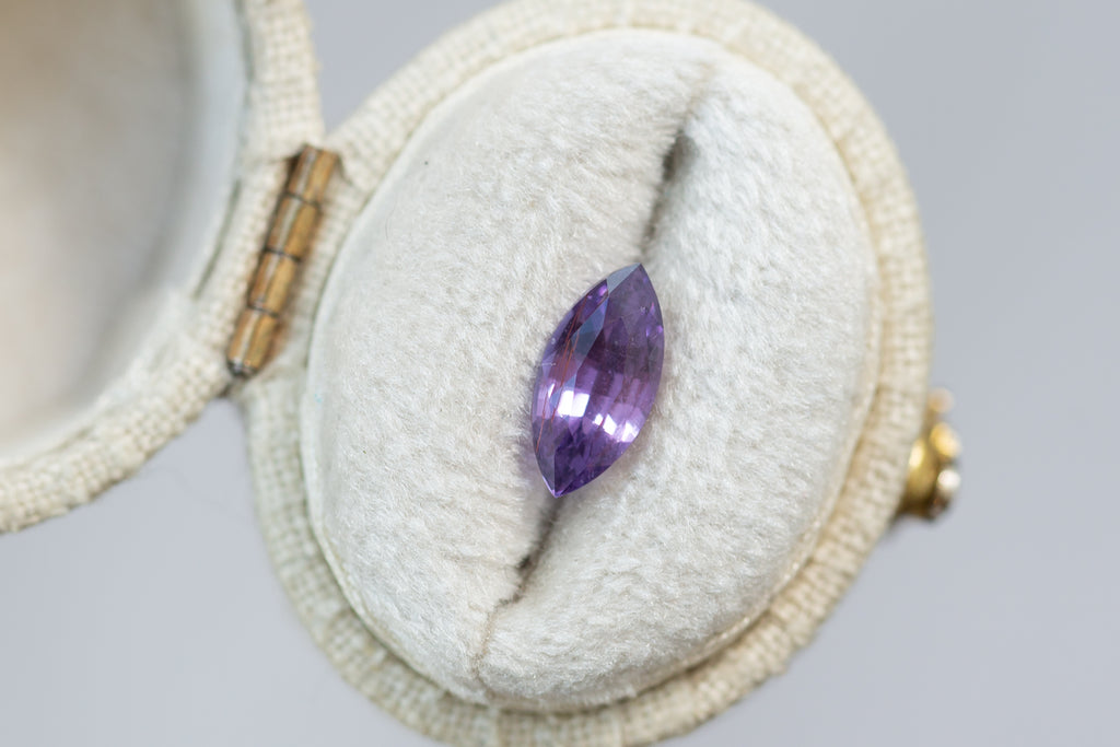 A lovely plum purple sapphire with unique, hot pink inclusions!