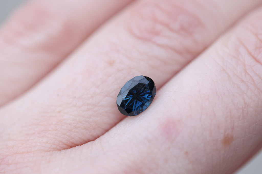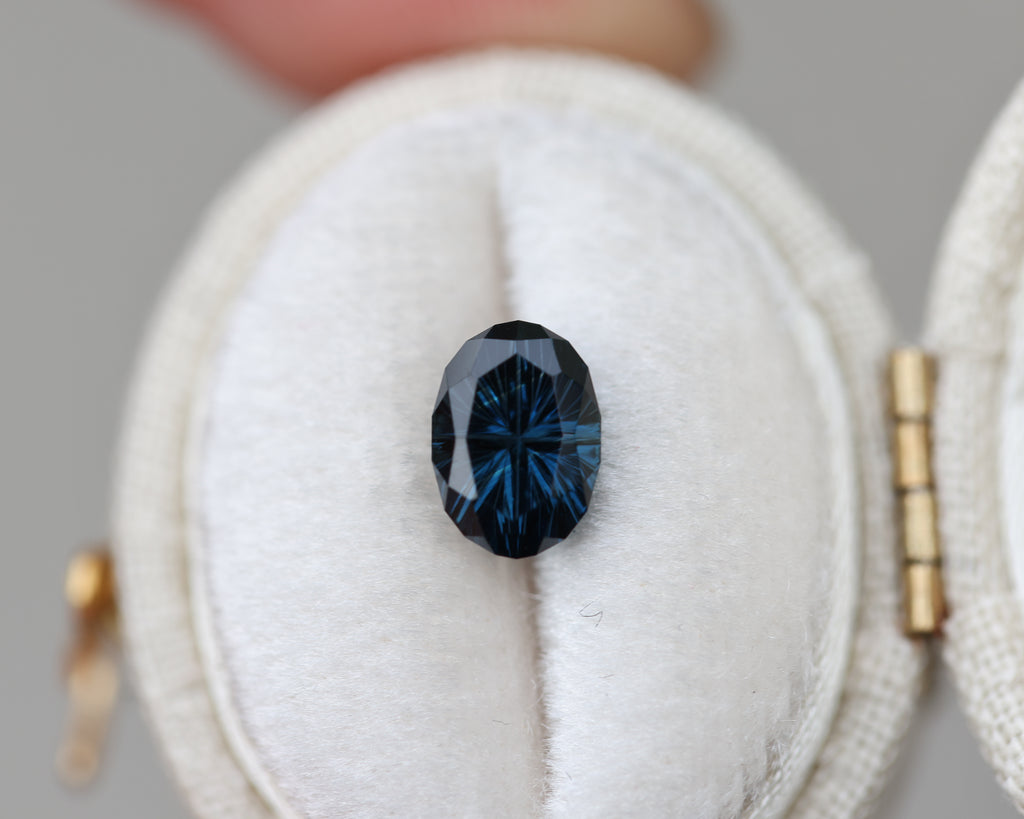 1.69ct oval deep blue sapphire - Starbrite cut by John Dyer