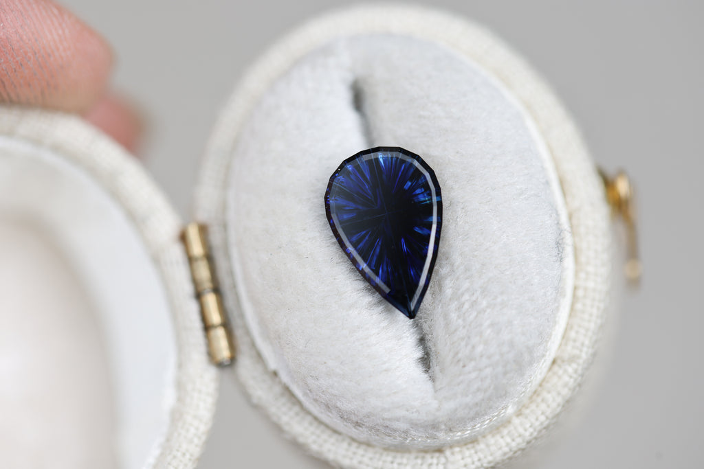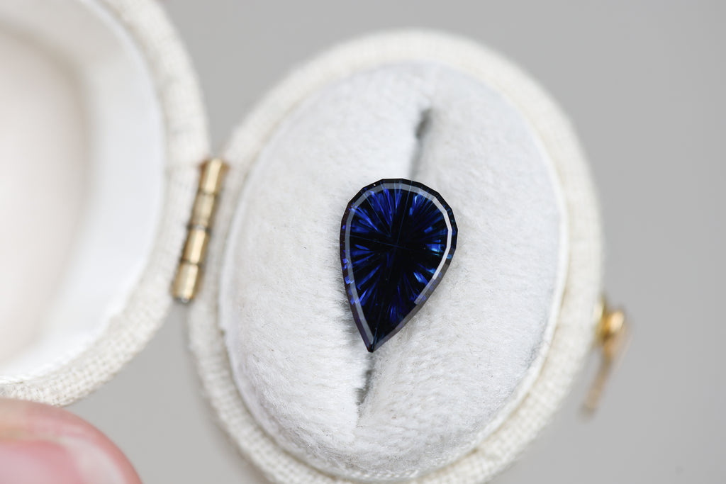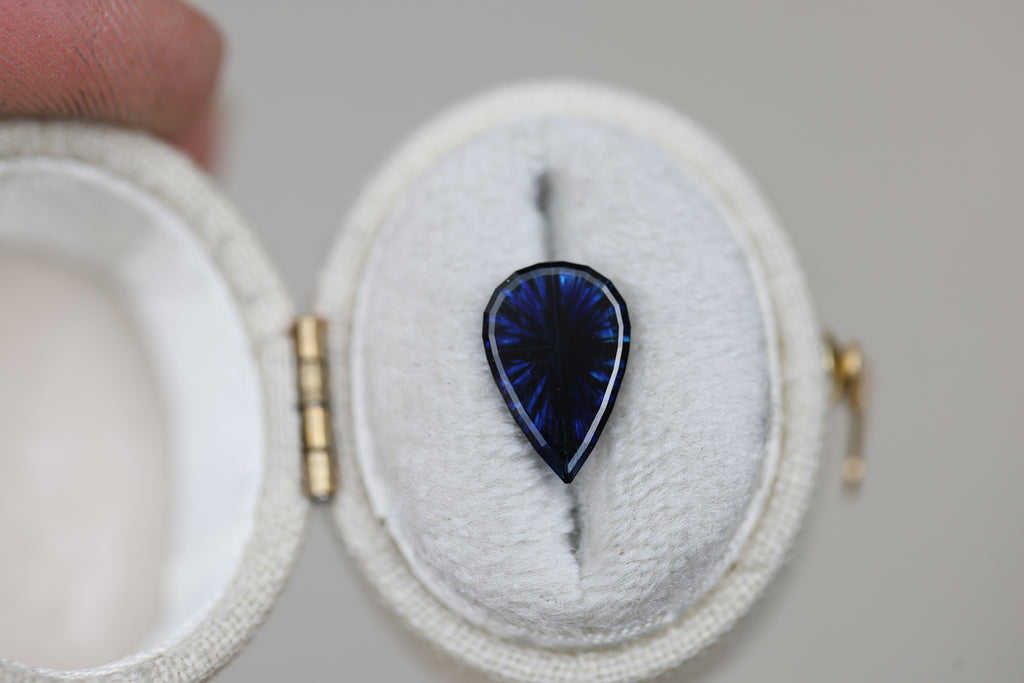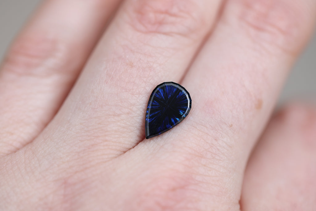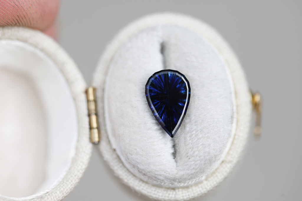 1.71ct pear deep dark blue sapphire - Starbrite cut by John Dyer