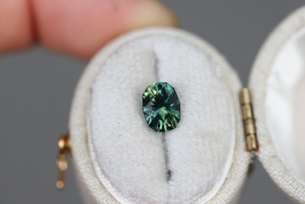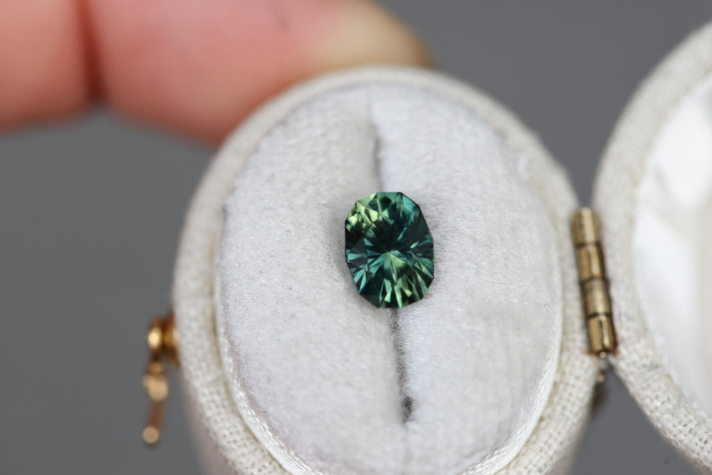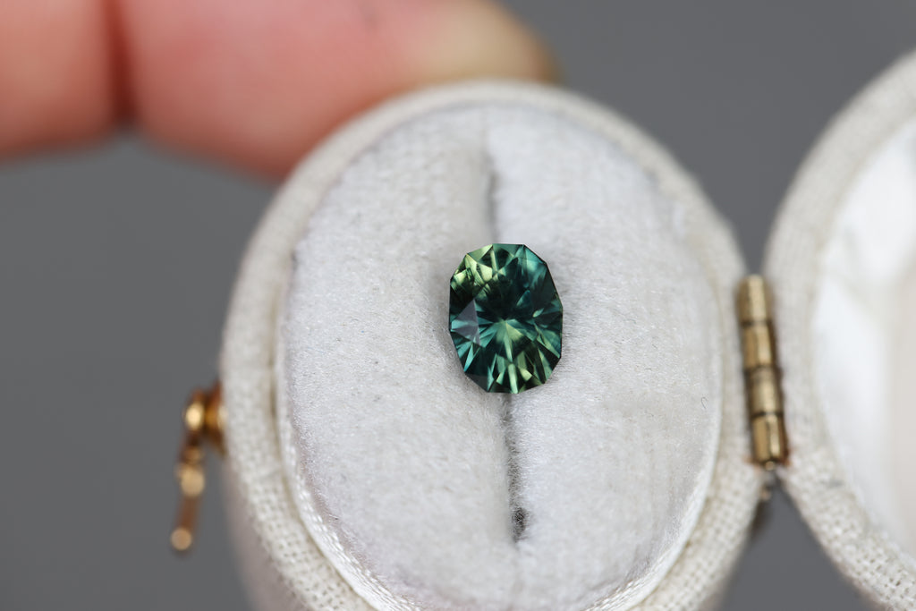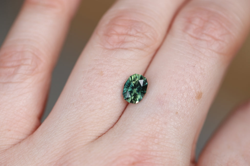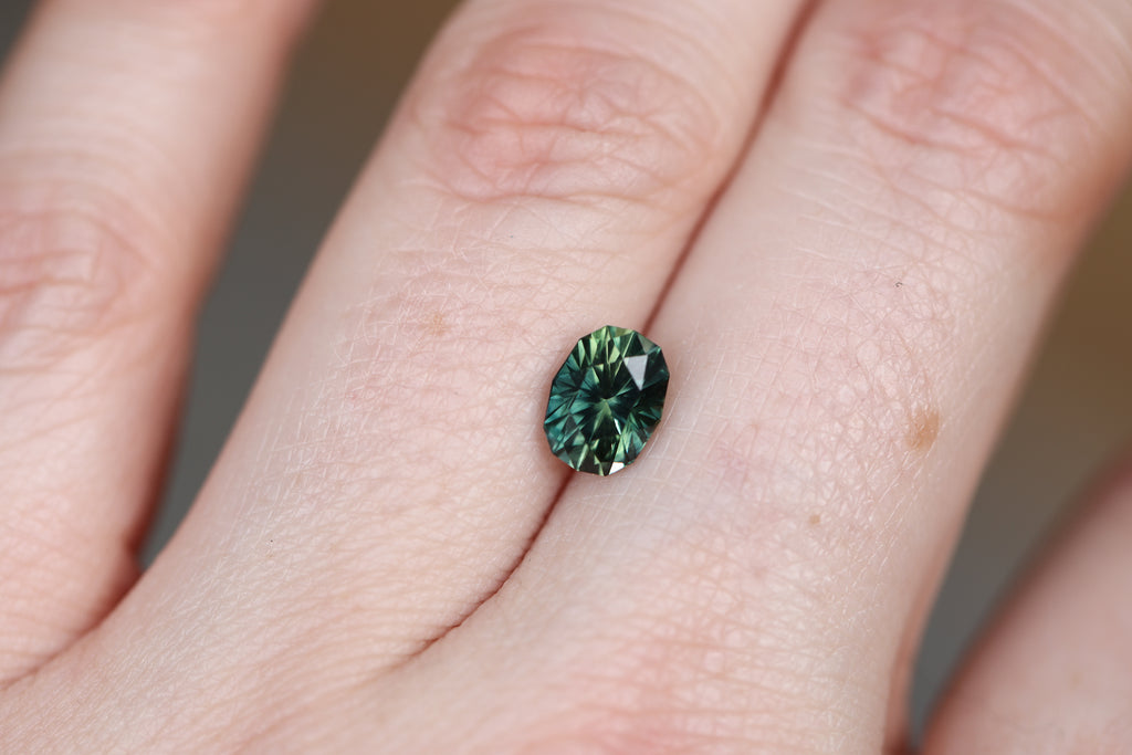 This absolutely stunning oval green blue sapphire is such a gorgeous mix of rich coloring! It has incredible faceting and will make such a stand out one of a kind ring!