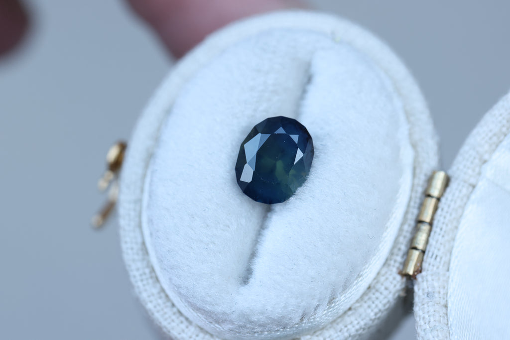 1.75ct oval deep blue teal sapphire
