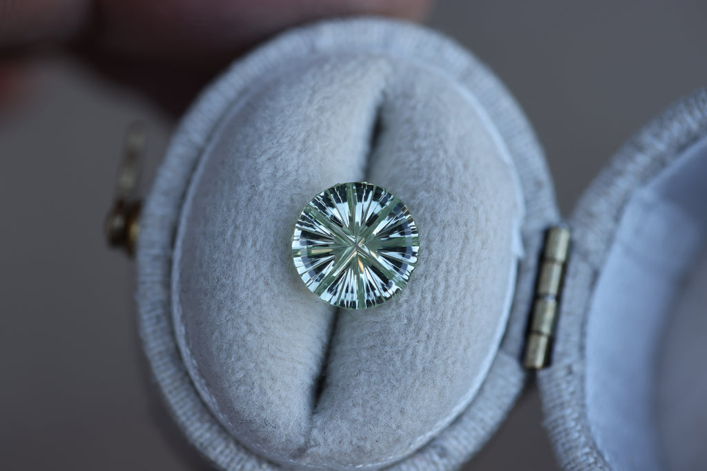 ON HOLD 1.77ct round light pale green sapphire - Starbrite cut by John Dyer