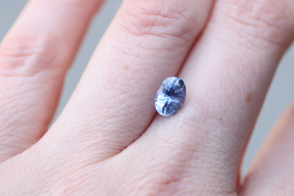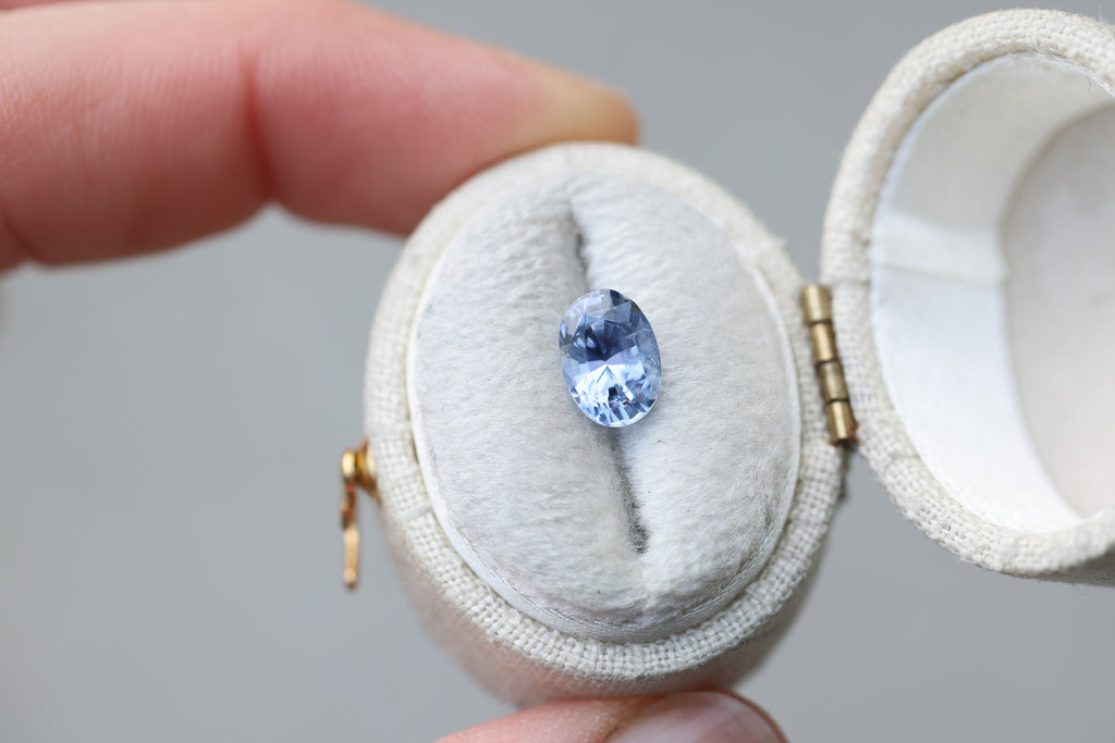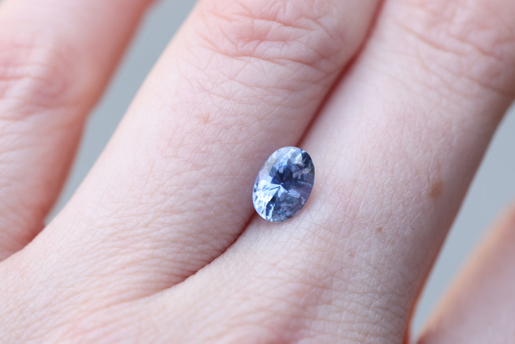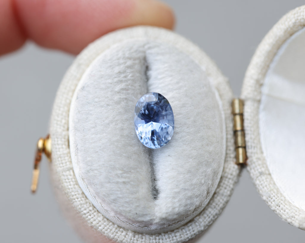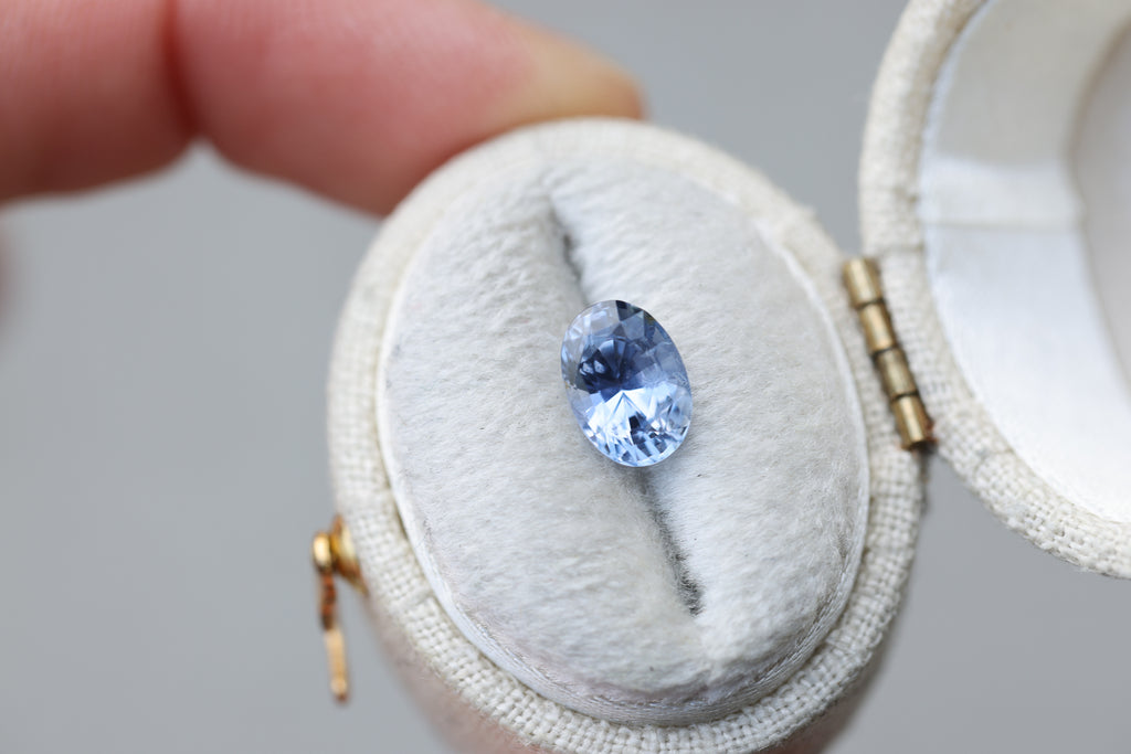 This gorgeous oval blue sapphire has a lovely periwinkle undertone and just an absolute beauty!