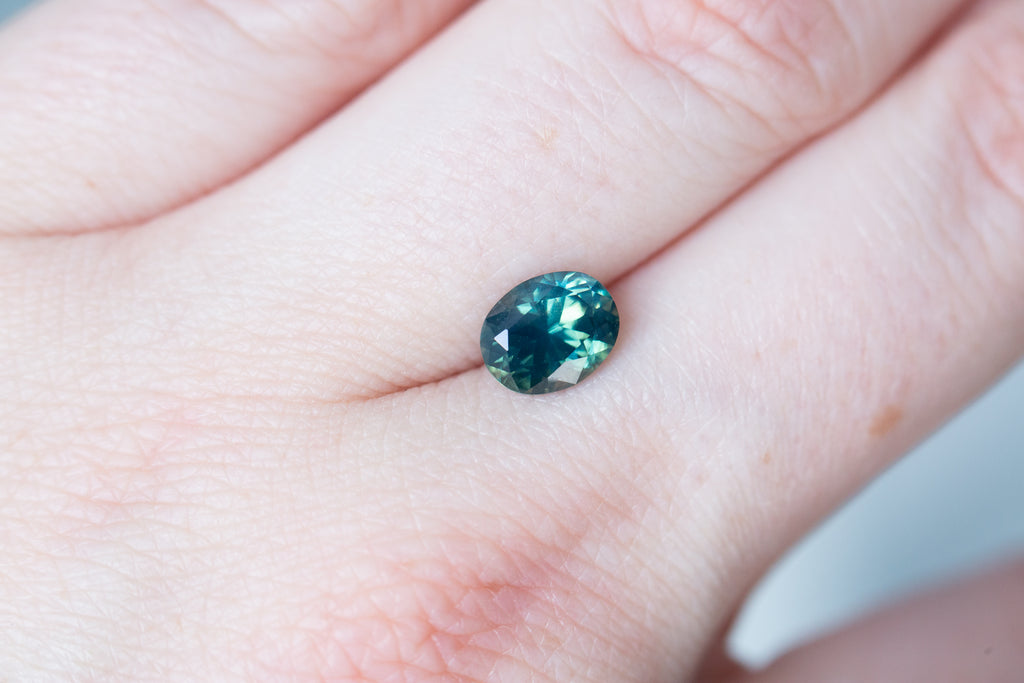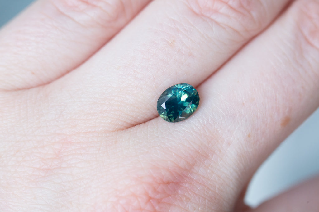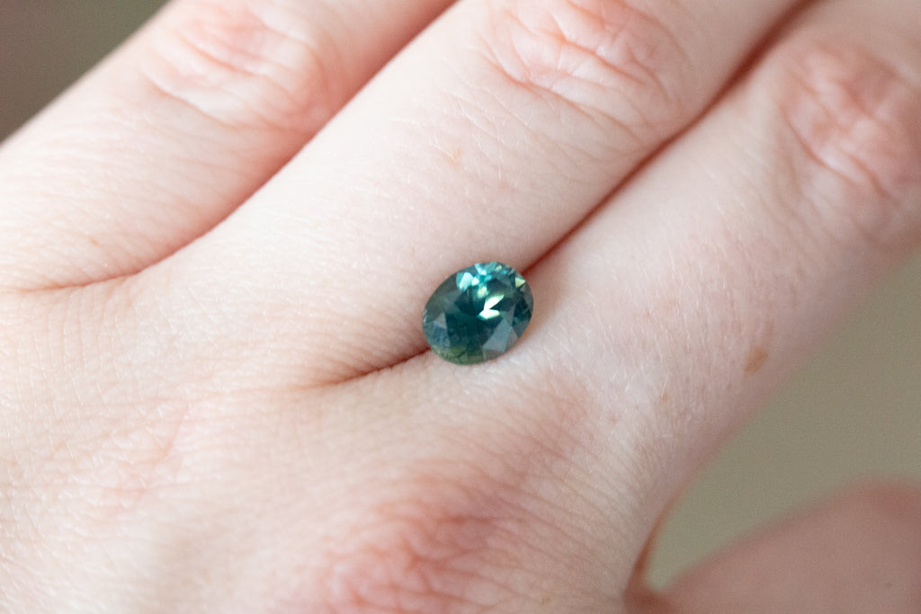 This is such a gorgeous blue/teal/green opalescent sapphire. It has an incredible mix of colors from blue to green in varying depths that provide a lot of dimension.