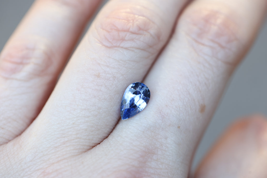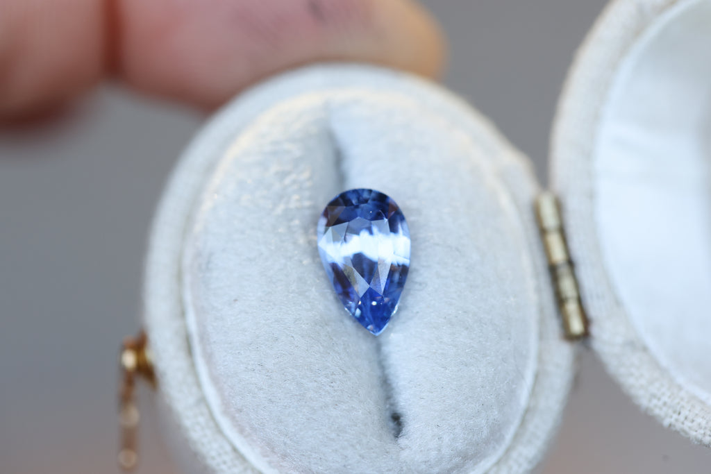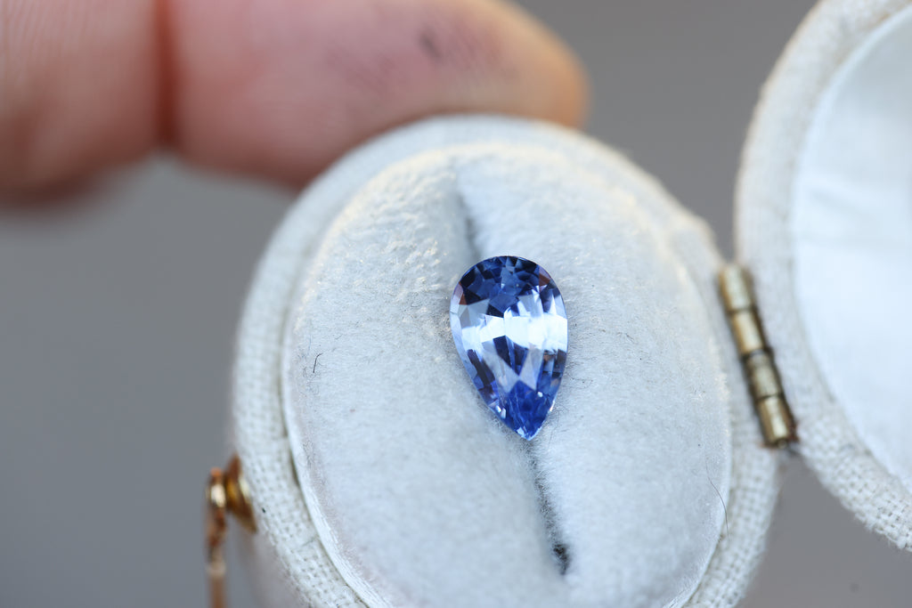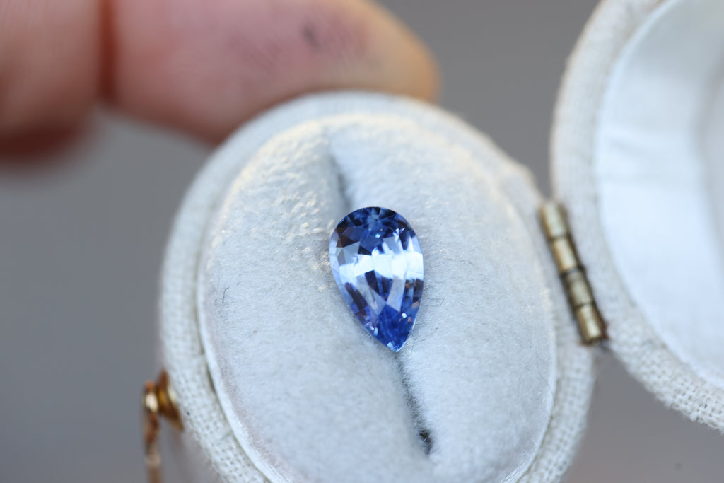 This absolute beauty is a pear sapphire with such rich purple blue coloring - so spectacular!