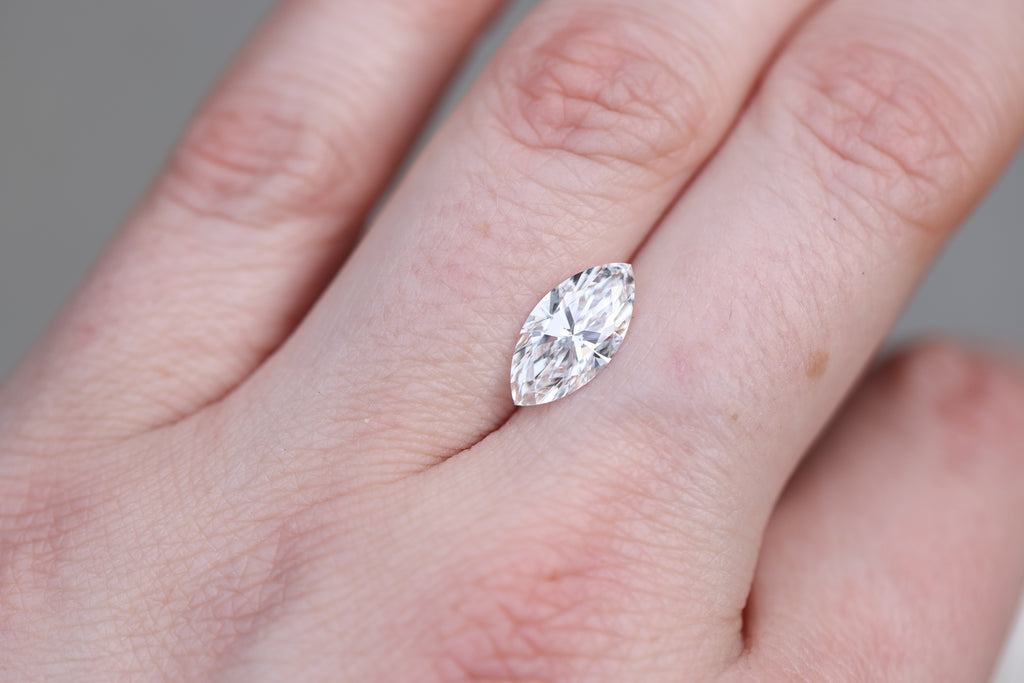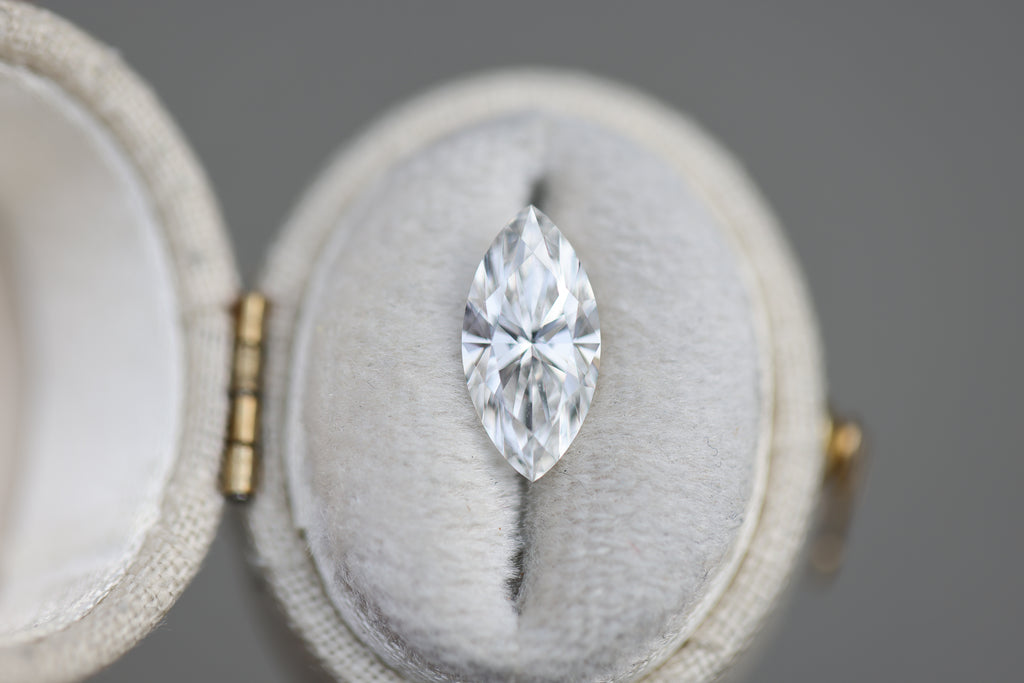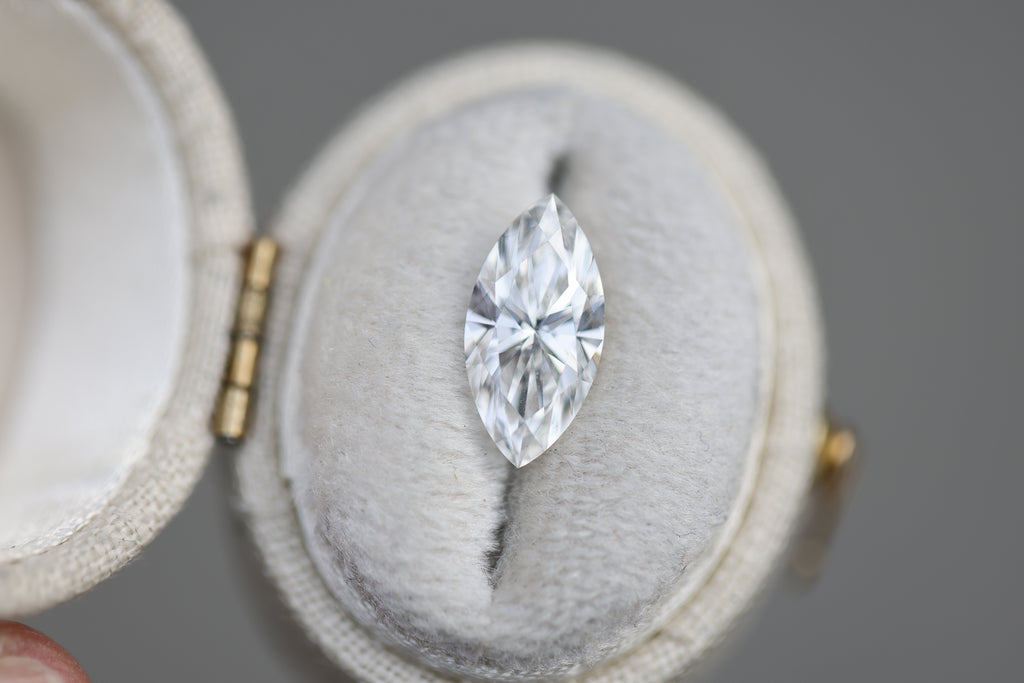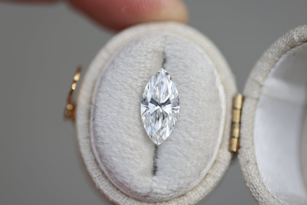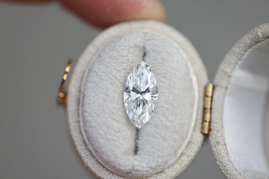This stunner is a marquise lab diamond with the most incredible sparkle!