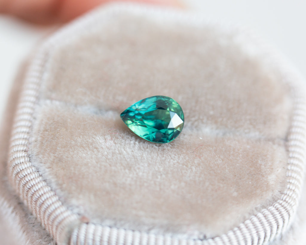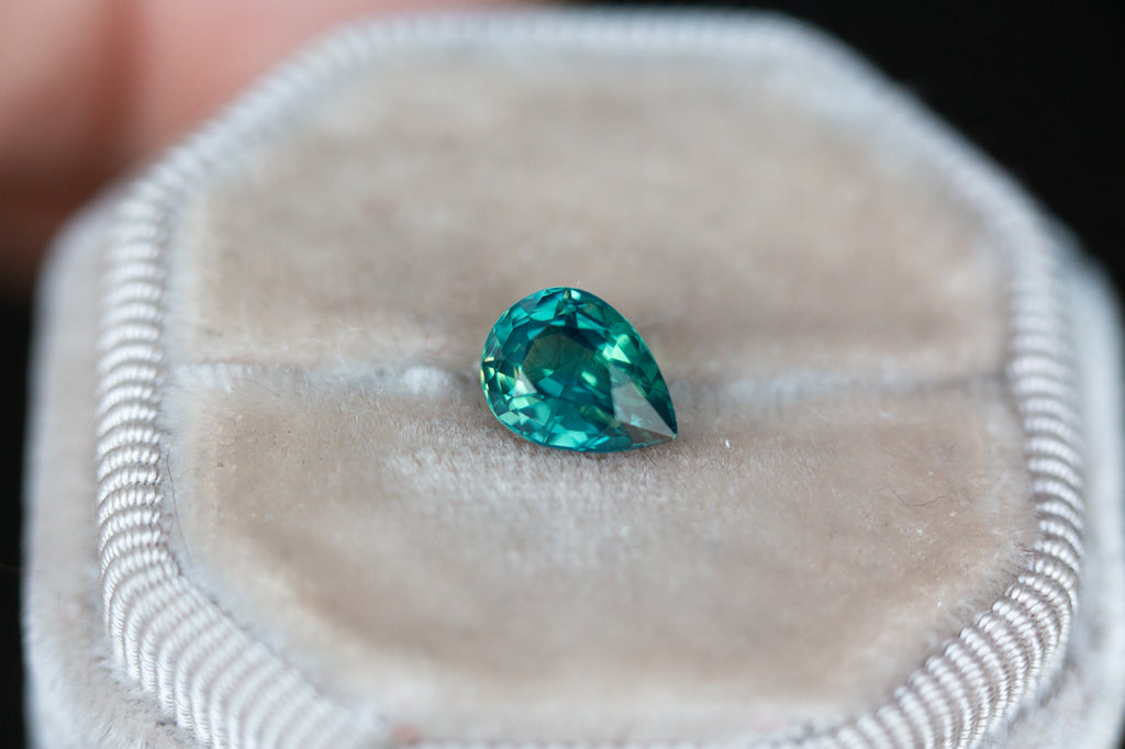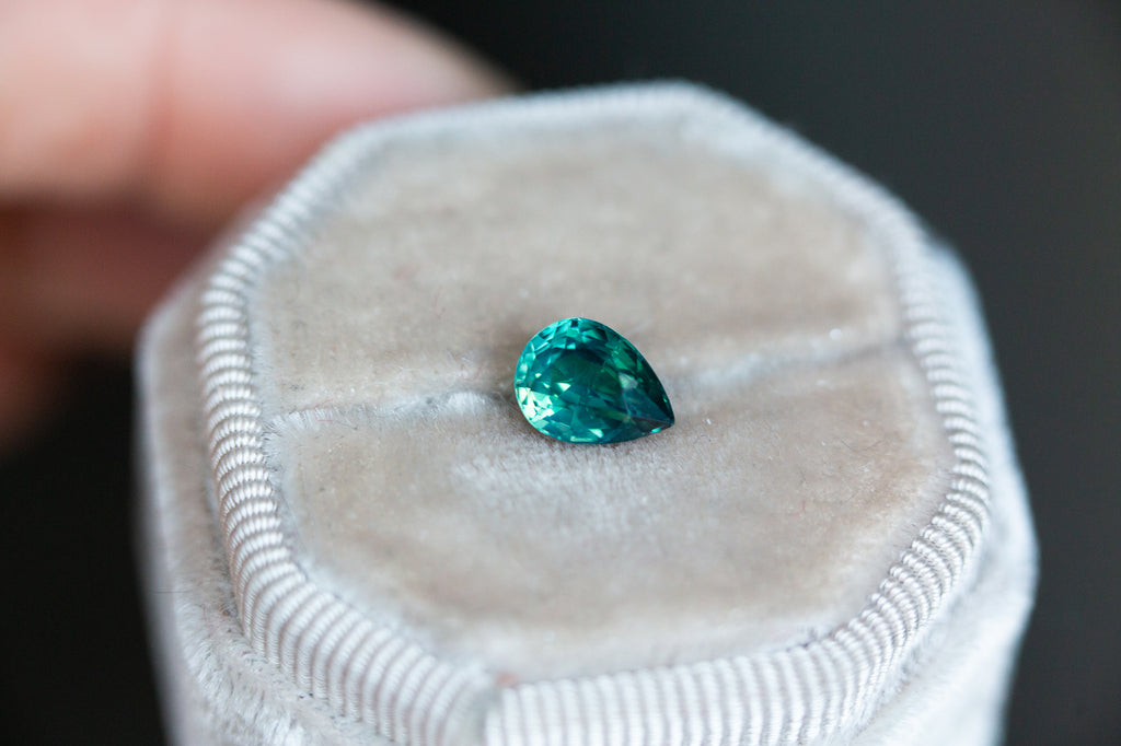 -Unheated, Gombe Nigeria origin. This is one of the most beautiful teal sapphires I've ever had, it's a true teal color and has beautiful play with the light, even in darker lighting it shows a teal color.