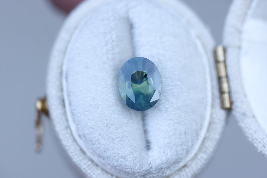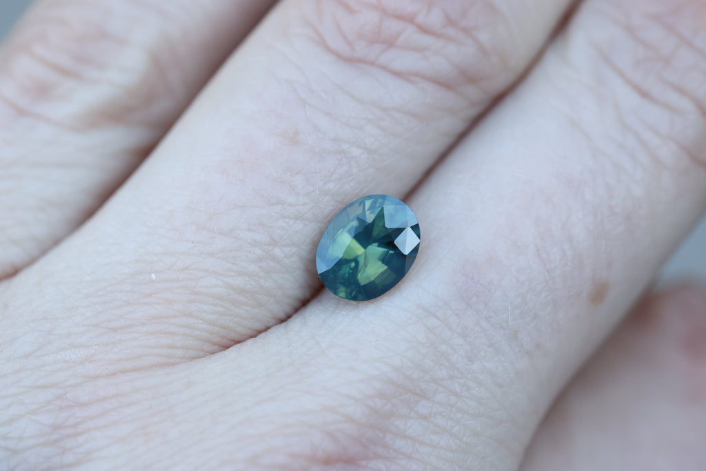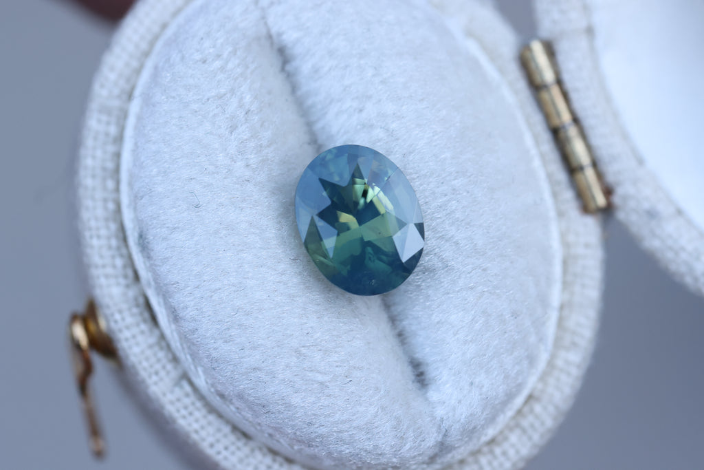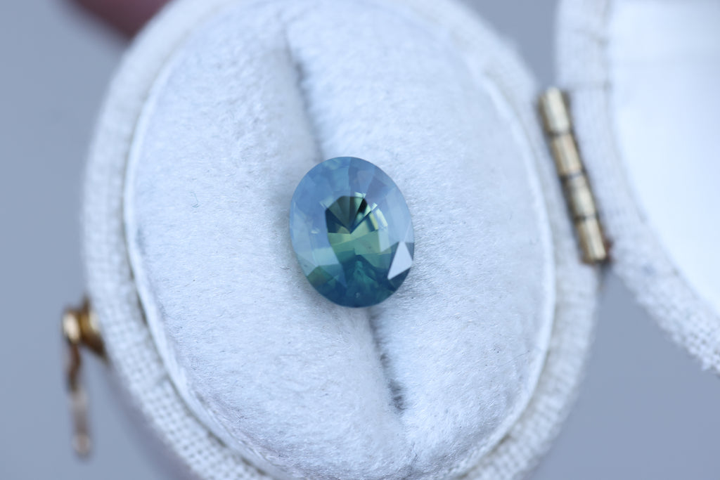 This absolutely stunning oval opalescent sapphire has the most magical opalescence and mix of green teal coloring!