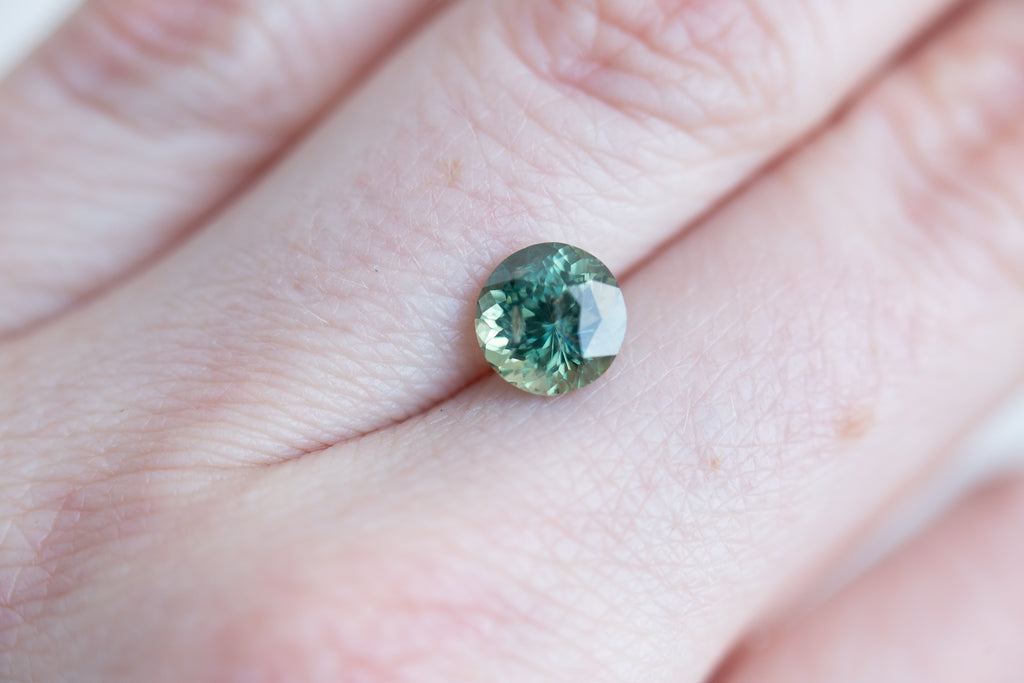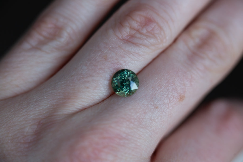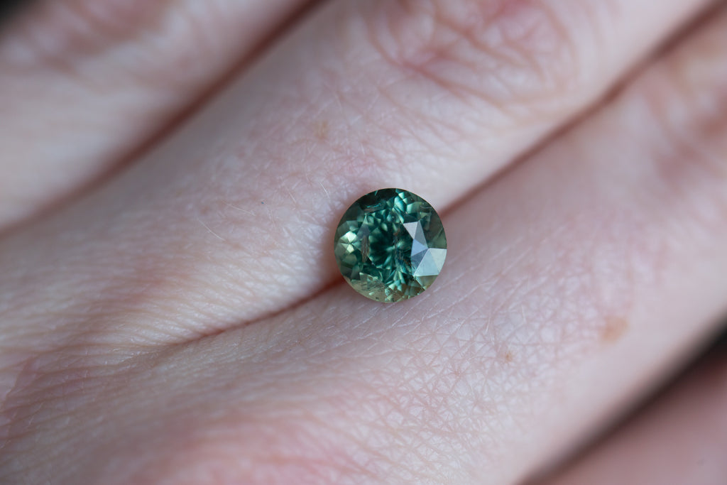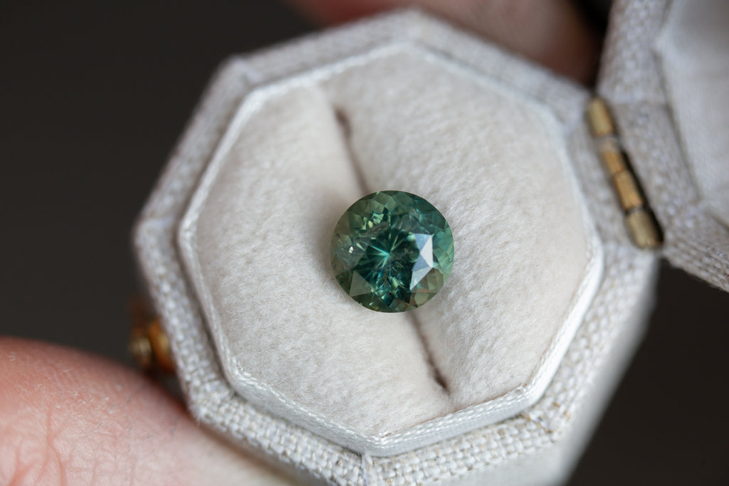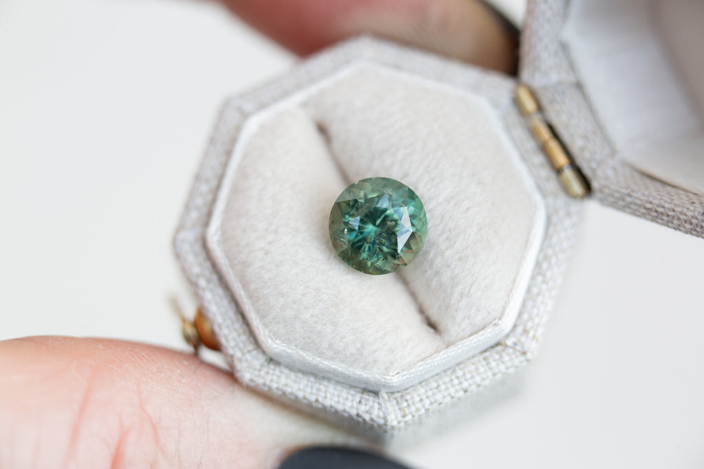 -Teal green coloring, brilliant cut, does have inclusions throughout the stone