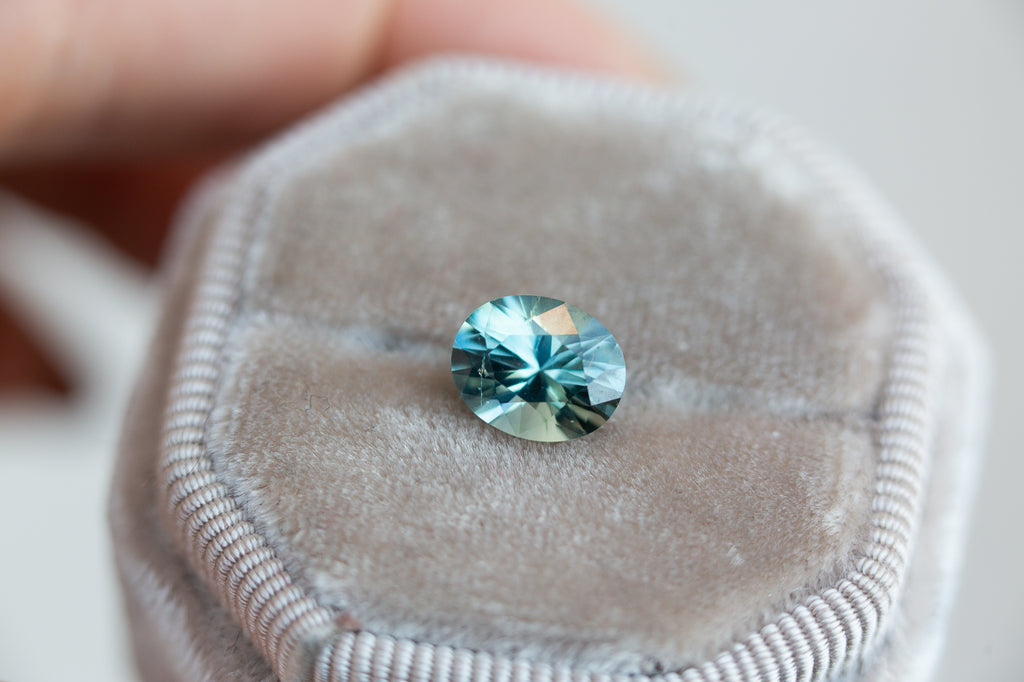 -This stone is one of the most beautiful light teal colors I have seen, it looks amazing in good lighting as well as darker lighting which is rare. Precision cut, the inclusions are visible but they are clear so it does blend with the color pretty well.