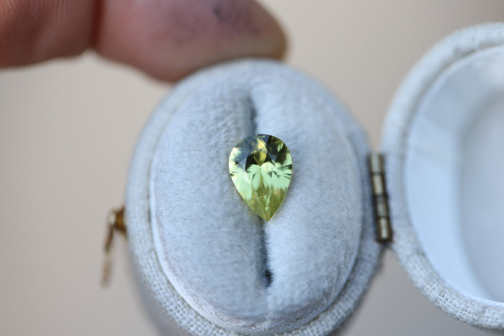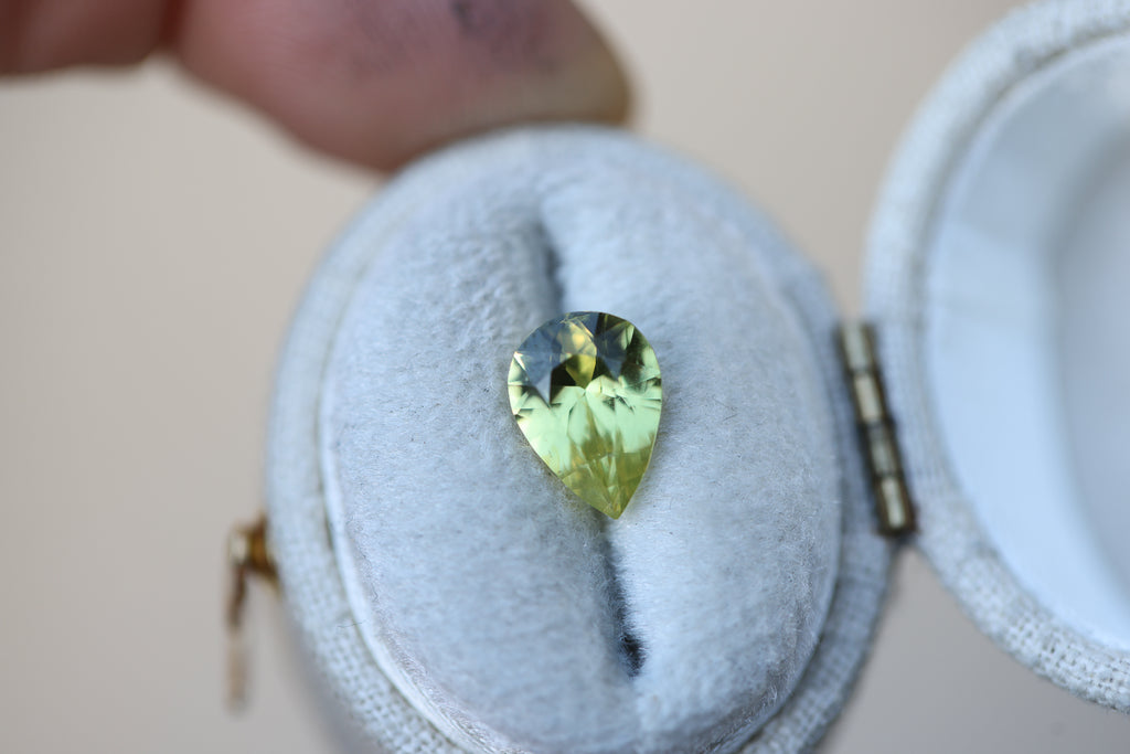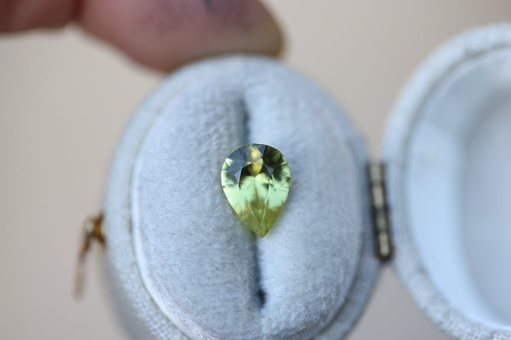 This striking yellow stone has a hint of green that makes it so special and unique!