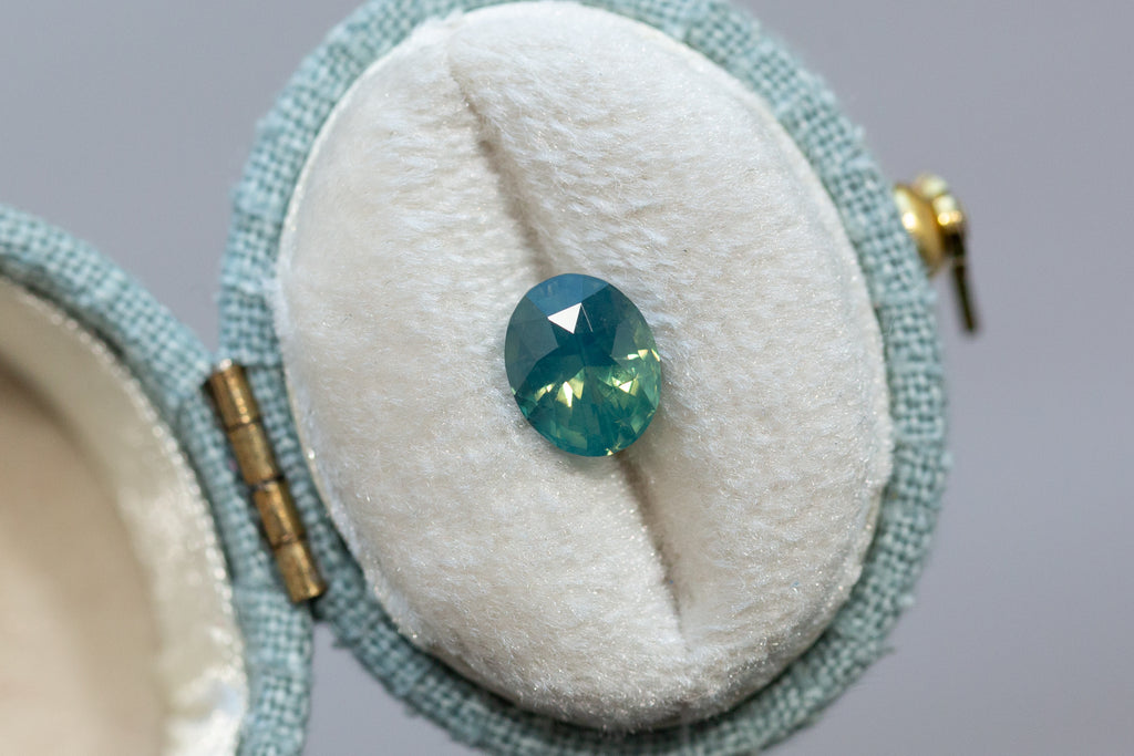 ON HOLD 1.53ct Oval Opalescent Teal Green Sapphire
